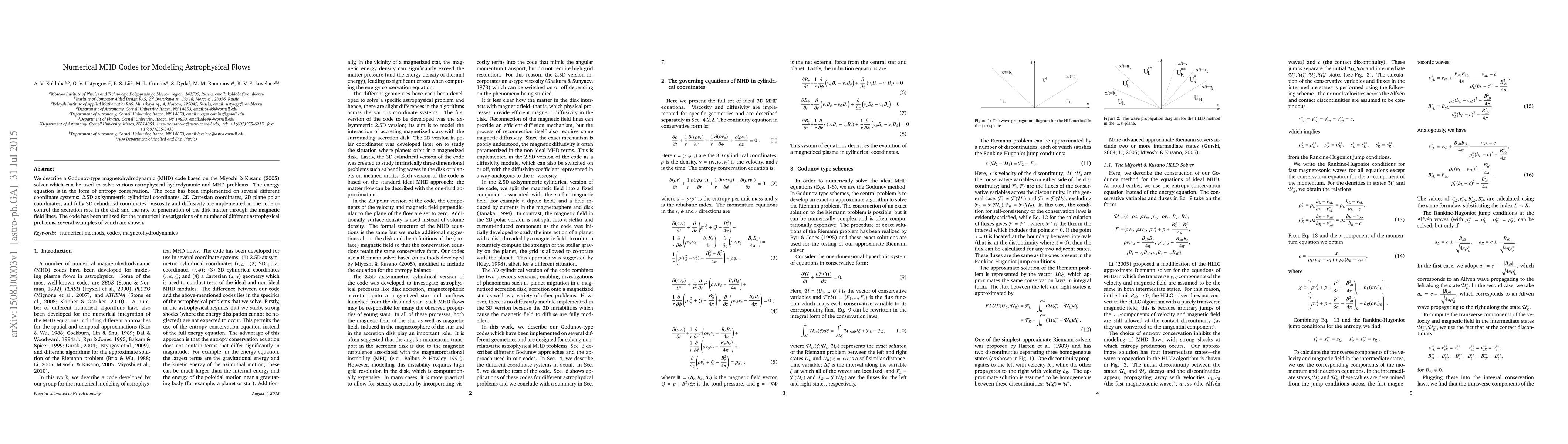 This paper presents a Godunov-type MHD code based on the Miyoshi and Kusano solver, designed for solving astrophysical hydrodynamic and MHD problems. The code supports various coordinate systems and includes viscosity and diffusivity to model accretion rates and magnetic field interactions.