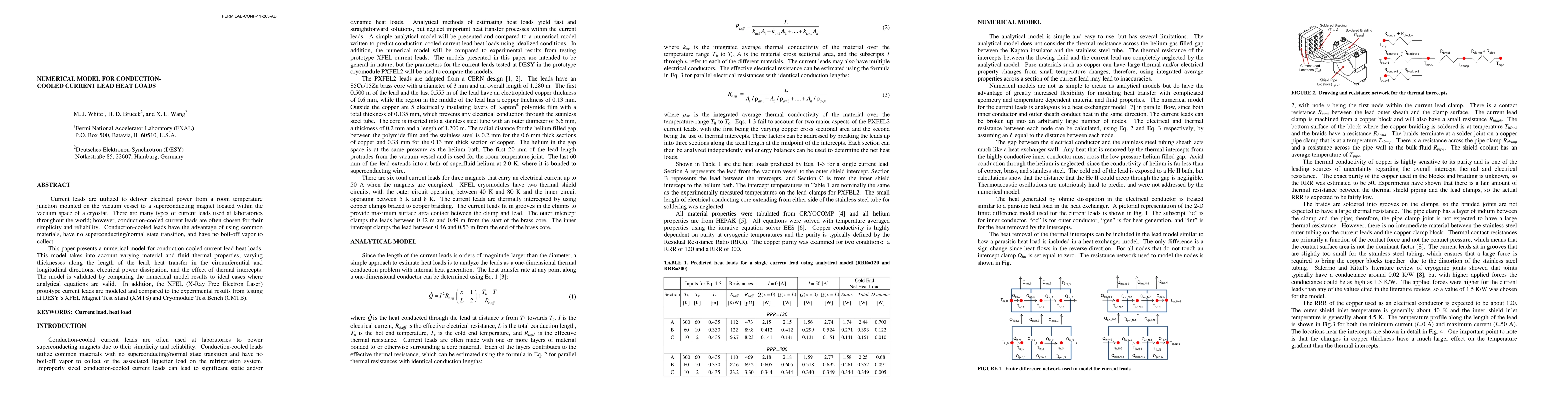 This paper develops a numerical model for analyzing heat loads in conduction-cooled current leads, which are essential for transferring electrical power in cryogenic environments. The model considers various thermal and electrical factors and is validated against ideal analytical cases using the XFEL prototype current leads.