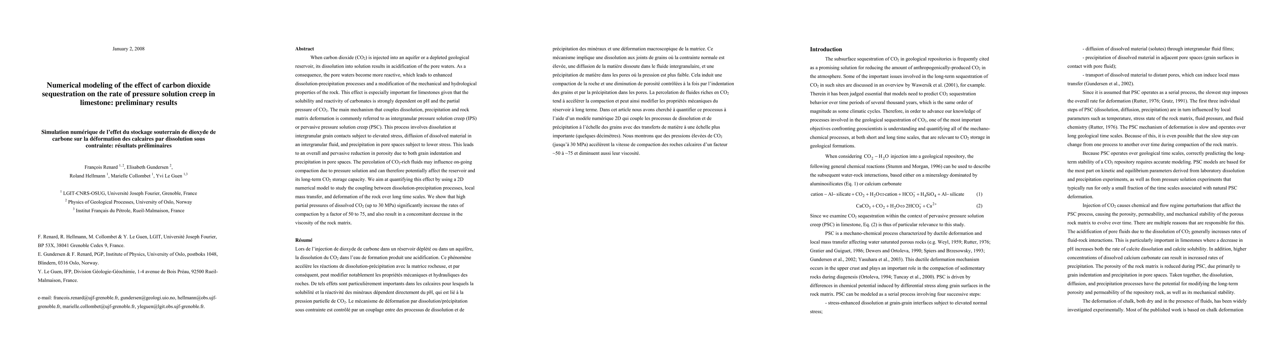 When carbon dioxide (CO2) is injected into an aquifer or a depleted geological reservoir, its dissolution into solution results in acidification of the pore waters. As a consequence, the pore waters become more reactive, which leads to enhanced dissolution-precipitation processes and a modification of the mechanical and hydrological properties of the rock. This effect is especially important for limestones given that the solubility and reactivity of carbonates is strongly dependent on pH and the partial pressure of CO2. The main mechanism that couples dissolution, precipitation and rock matrix deformation is commonly referred to as intergranular pressure solution creep (IPS) or pervasive pressure solution creep (PSC). This process involves dissolution at intergranular grain contacts subject to elevated stress, diffusion of dissolved material in an intergranular fluid, and precipitation in pore spaces subject to lower stress. This leads to an overall and pervasive reduction in porosity due to both grain indentation and precipitation in pore spaces. The percolation of CO2-rich fluids may influence on-going compaction due to pressure solution and can therefore potentially affect the reservoir and its long-term CO2 storage capacity. We aim at quantifying this effect by using a 2D numerical model to study the coupling between dissolution-precipitation processes, local mass transfer, and deformation of the rock over long time scales. We show that high partial pressures of dissolved CO2 (up to 30 MPa) significantly increase the rates of compaction by a factor of ~ 50 to ~ 75, and also result in a concomitant decrease in the viscosity of the rock matrix.