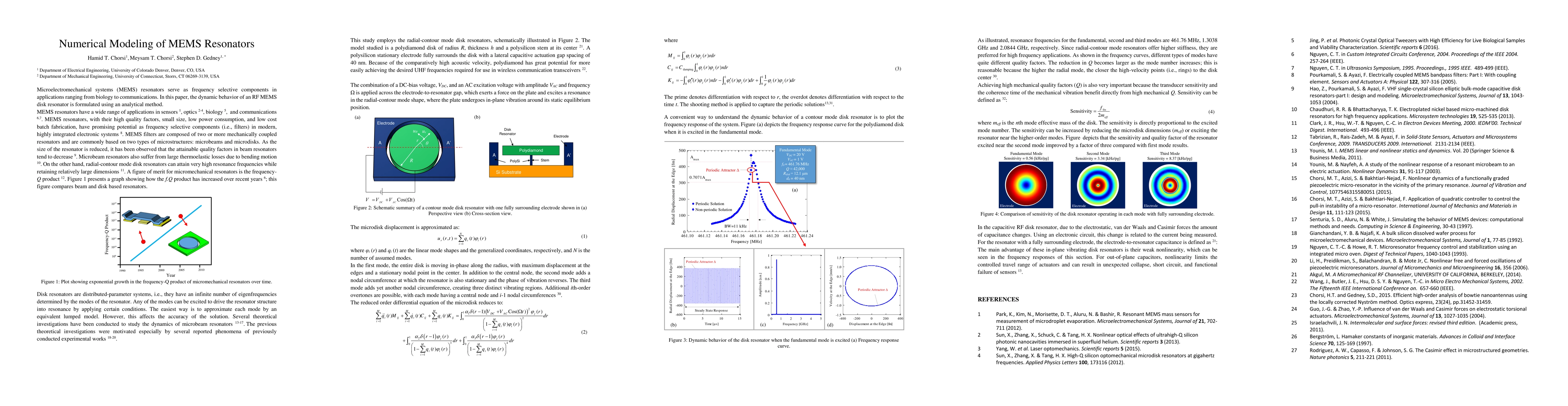 Microelectromechanical systems (MEMS) resonators serve as frequency selective components in applications ranging from biology to communications. In this paper, the dynamic behavior of an RF MEMS disk resonator is formulated using an analytical method.