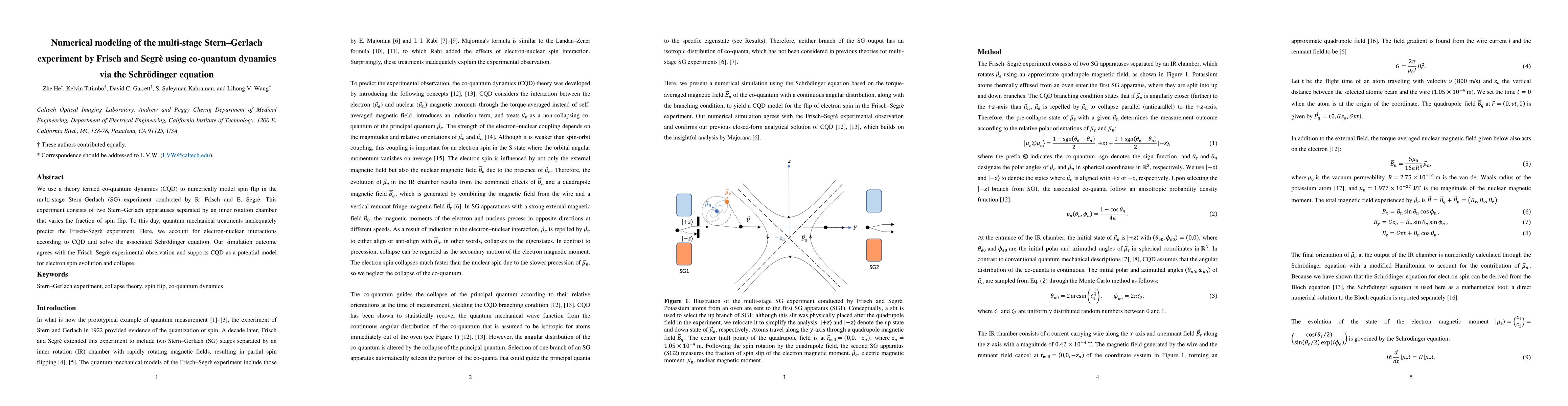 We use a theory termed co-quantum dynamics (CQD) to numerically model spin flip in the multi-stage Stern$\unicode{x2013}$Gerlach (SG) experiment conducted by R. Frisch and E. Segr\`e. This experiment consists of two Stern$\unicode{x2013}$Gerlach apparatuses separated by an inner rotation chamber that varies the fraction of spin flip. To this day, quantum mechanical treatments inadequately predict the Frisch$\unicode{x2013}$Segr\`e experiment. Here, we account for electron-nuclear interactions according to CQD and solve the associated Schr\"odinger equation. Our simulation outcome agrees with the Frisch$\unicode{x2013}$Segr\`e experimental observation and supports CQD as a potential model for electron spin evolution and collapse.