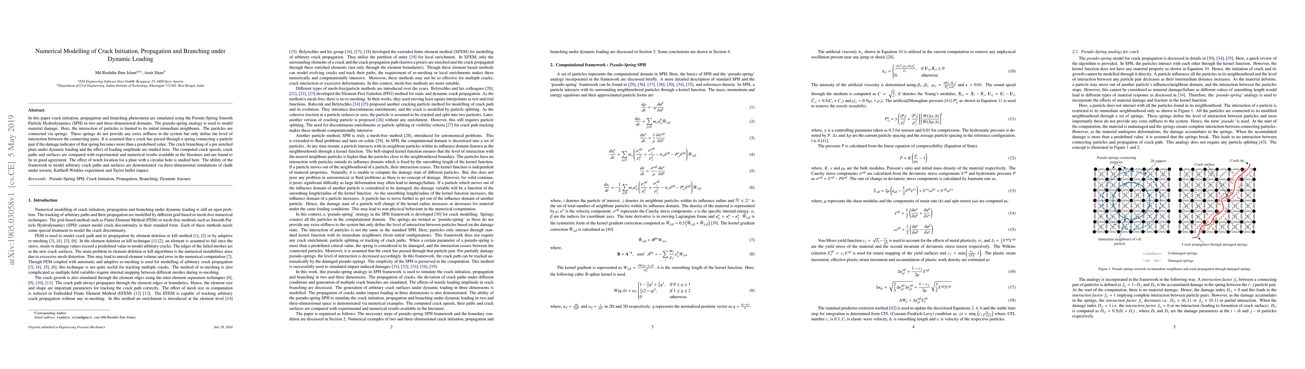This paper uses Pseudo-Spring Smooth Particle Hydrodynamics (SPH) to simulate crack initiation, propagation, and branching under dynamic loading, demonstrating good agreement with experimental and numerical results. The pseudo-spring model captures crack behavior in both 2D and 3D, including complex crack paths and branching in various materials.