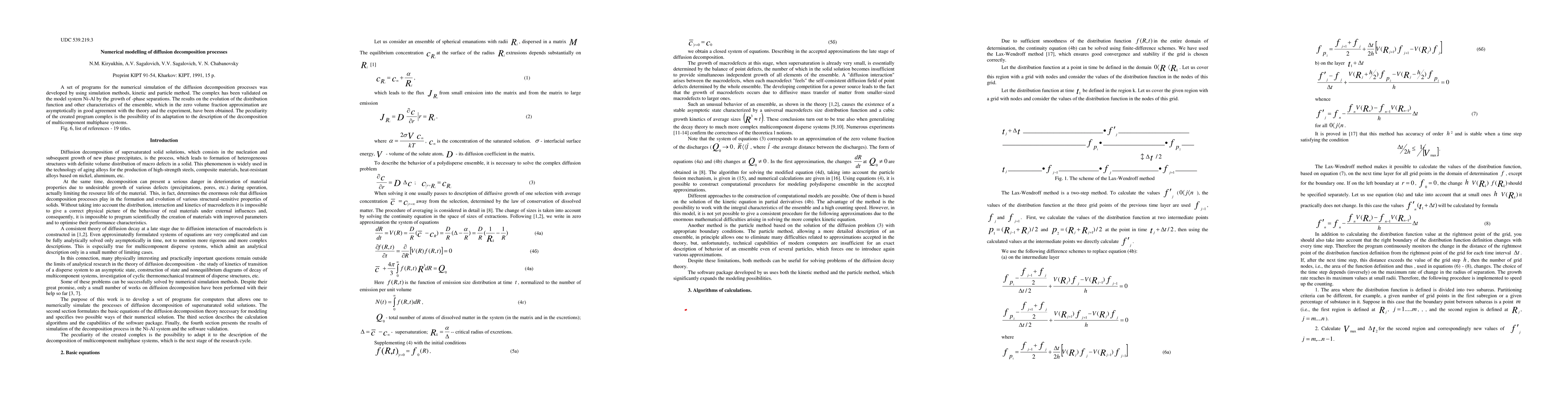 This paper presents a suite of numerical programs for simulating diffusion decomposition processes using kinetic and particle methods, validated on the Ni-Al system. The model shows good agreement with theoretical and experimental results, and can be adapted for multicomponent multiphase systems.