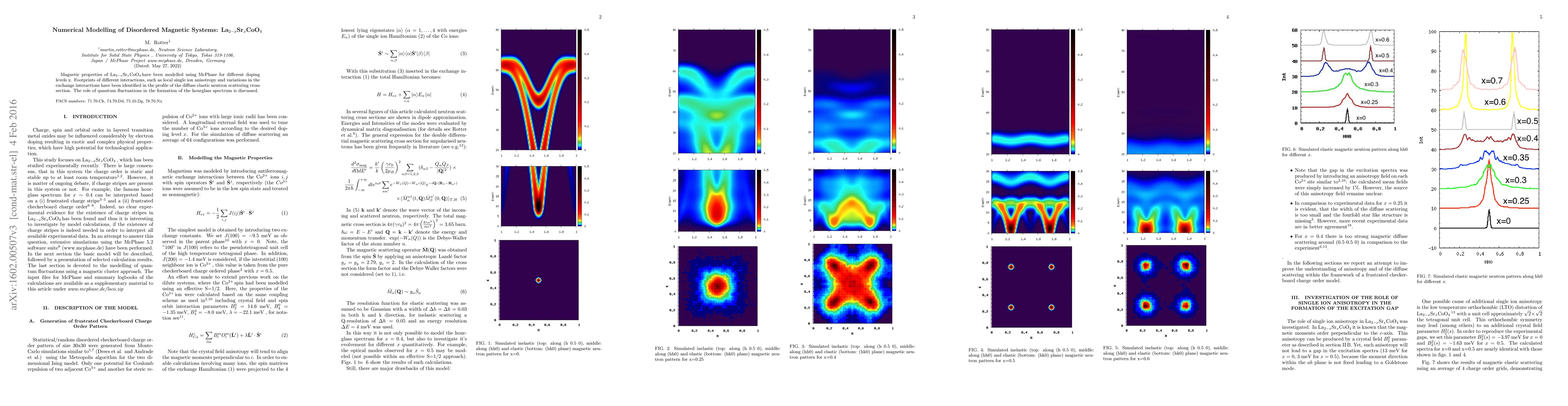 This paper uses McPhase to model the magnetic properties of La2-xSrxCoO4, identifying interactions like local anisotropy and exchange variations through diffuse elastic neutron scattering. The study also explores quantum fluctuations' role in creating the hourglass spectrum.
