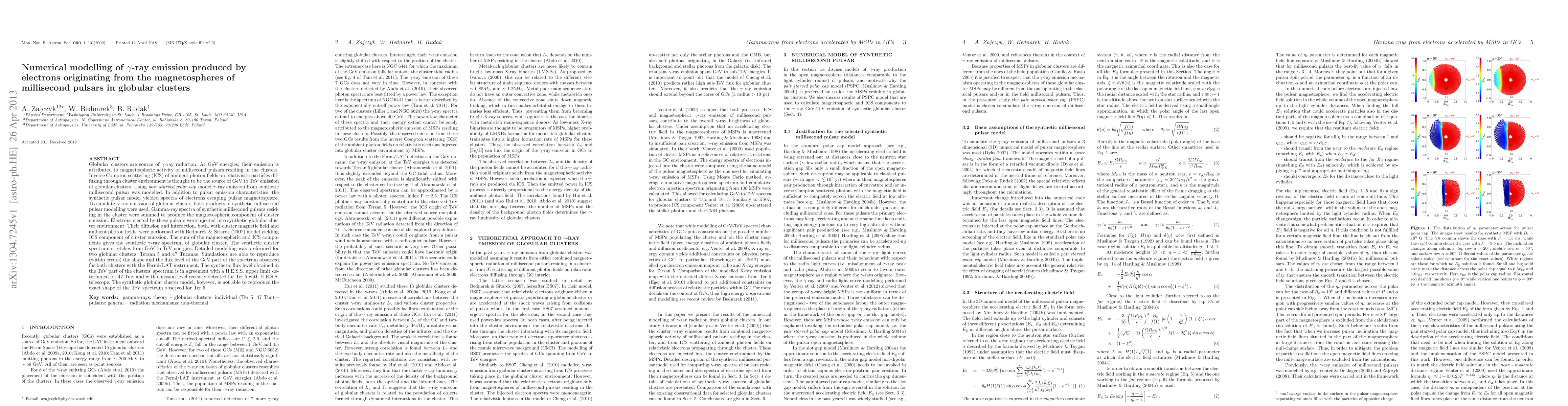 This paper explores the gamma-ray emission from globular clusters, attributing GeV-TeV radiation to millisecond pulsars' magnetospheric activity. Using a synthetic pulsar model, the study simulates the gamma-ray spectrum produced by electrons from pulsars and their interactions, reproducing observed GeV spectra for clusters Ter 5 and 47 Tuc, and matching TeV flux levels with H.E.S.S. observations.
