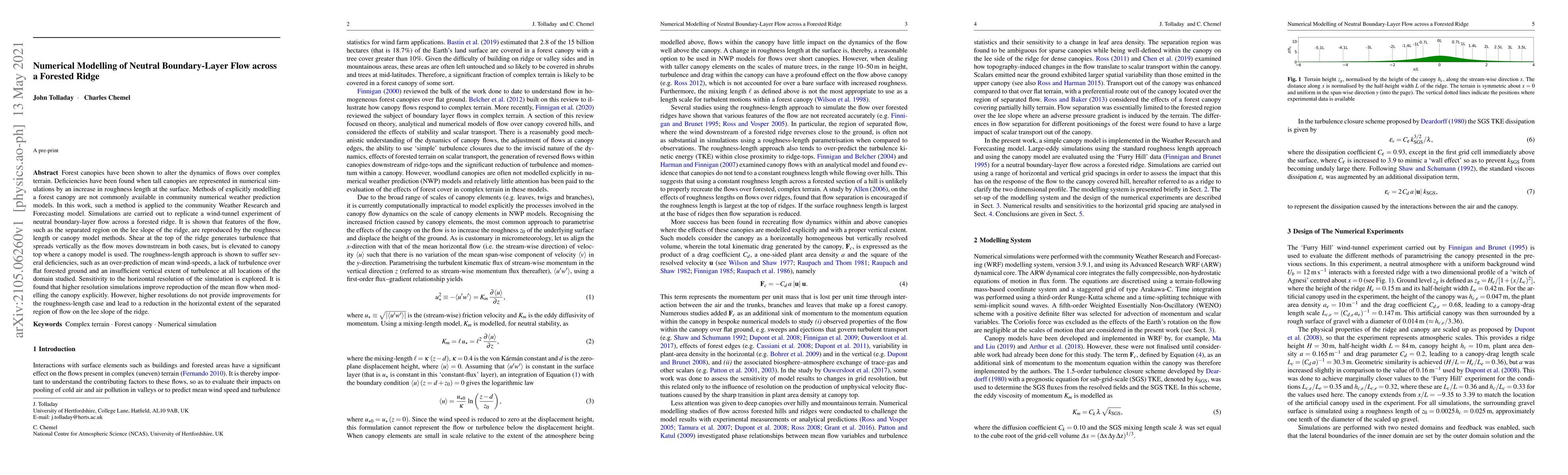 This study applies an explicit forest canopy model to the Weather Research and Forecasting model to simulate neutral boundary-layer flow over a forested ridge, demonstrating improved reproduction of flow features compared to the traditional roughness-length approach. Higher resolution simulations enhance mean flow accuracy when using the canopy model but do not benefit the roughness-length method and reduce the horizontal extent of the separated flow region.