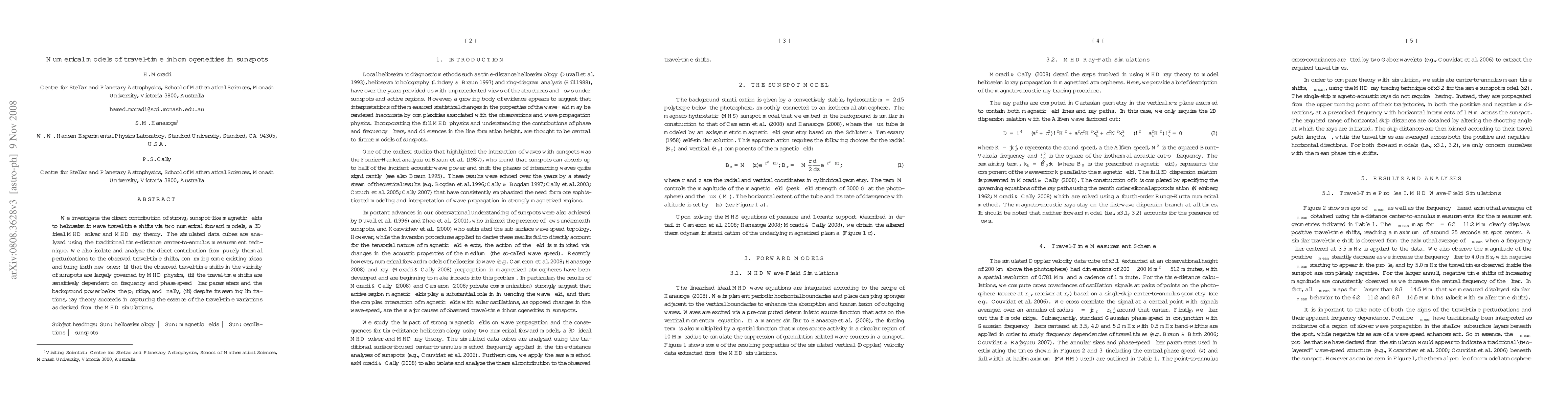 This paper uses numerical models to study the impact of sunspot magnetic fields on helioseismic wave travel times, finding that MHD physics largely governs these shifts. It also highlights the sensitivity of travel-time shifts to frequency and phase-speed filters, and confirms ray theory's effectiveness in capturing these variations.
