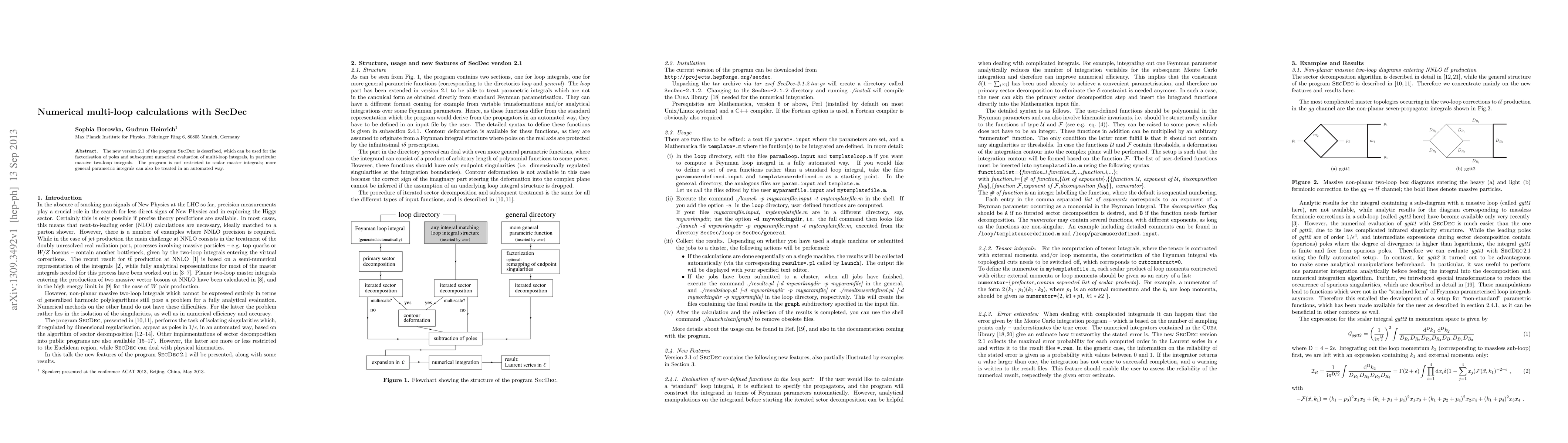 The new version 2.1 of the program SecDec is described, which can be used for the factorisation of poles and subsequent numerical evaluation of multi-loop integrals, in particular massive two-loop integrals. The program is not restricted to scalar master integrals; more general parametric integrals can also be treated in an automated way.