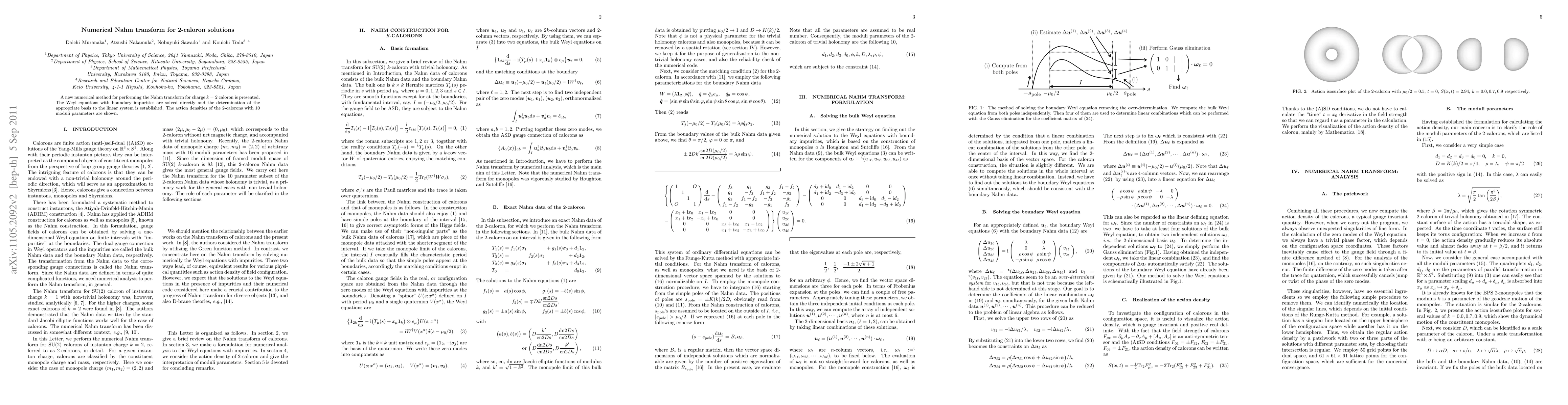 This paper presents a novel numerical method for executing the Nahm transform on 2-caloron solutions, solving the Weyl equations with boundary conditions and establishing a basis for the linear system, while illustrating the action densities of the 2-calorons with 10 moduli parameters.