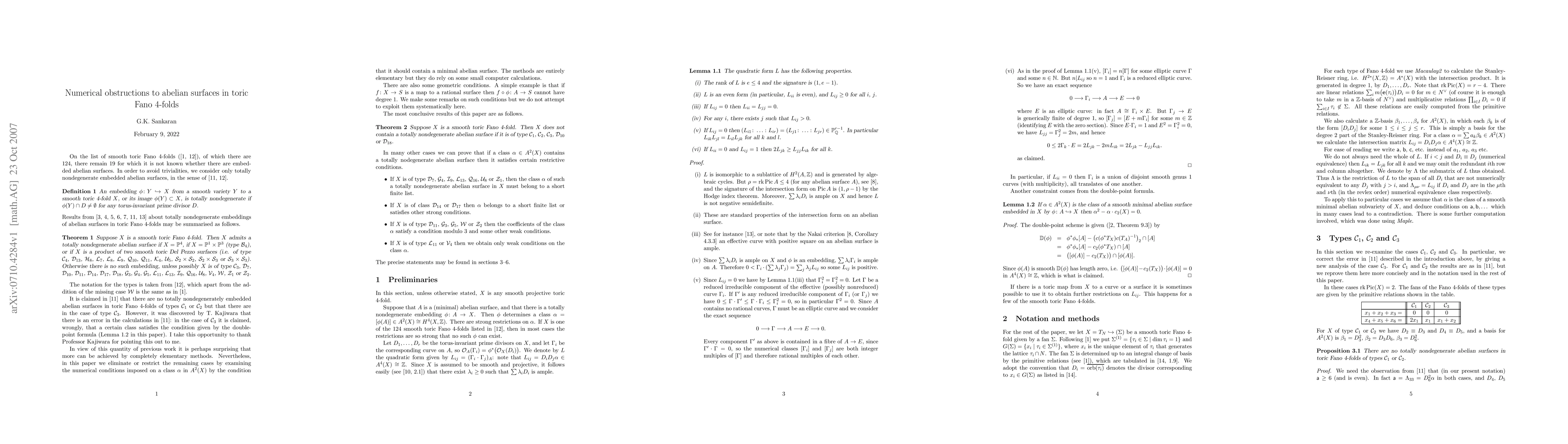 This research identifies numerical conditions preventing abelian surfaces from existing in certain toric Fano 4-folds, using computational methods to rule out additional possibilities where their presence is uncertain.