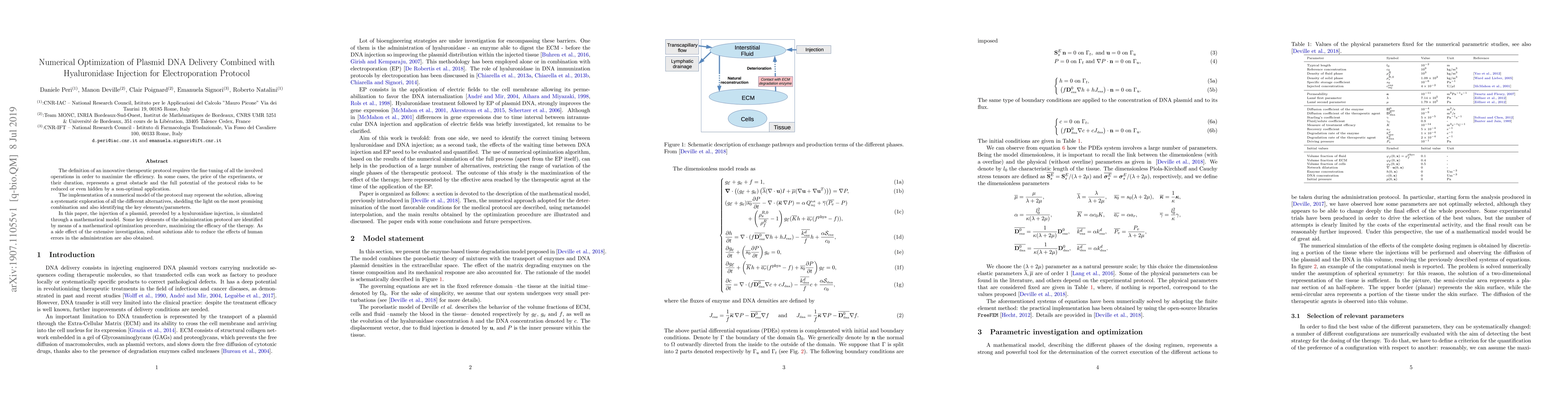 This paper presents a numerical model optimizing plasmid DNA delivery via electroporation, enhancing efficacy through hyaluronidase injection. The study identifies key protocol elements, ensures robust solutions minimizing human error, and promises improved therapeutic outcomes.