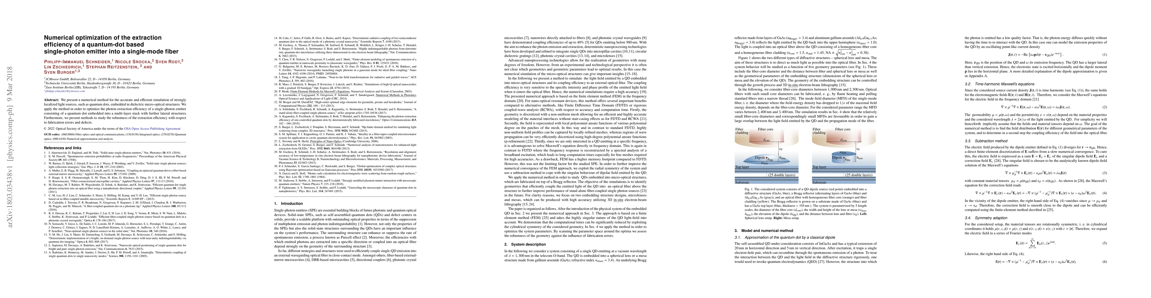 Researchers developed a numerical method to optimize the efficiency of extracting single photons from quantum dots embedded in micro-optical structures. The study aimed to improve the performance of single-photon emitters for applications such as optical communication systems.