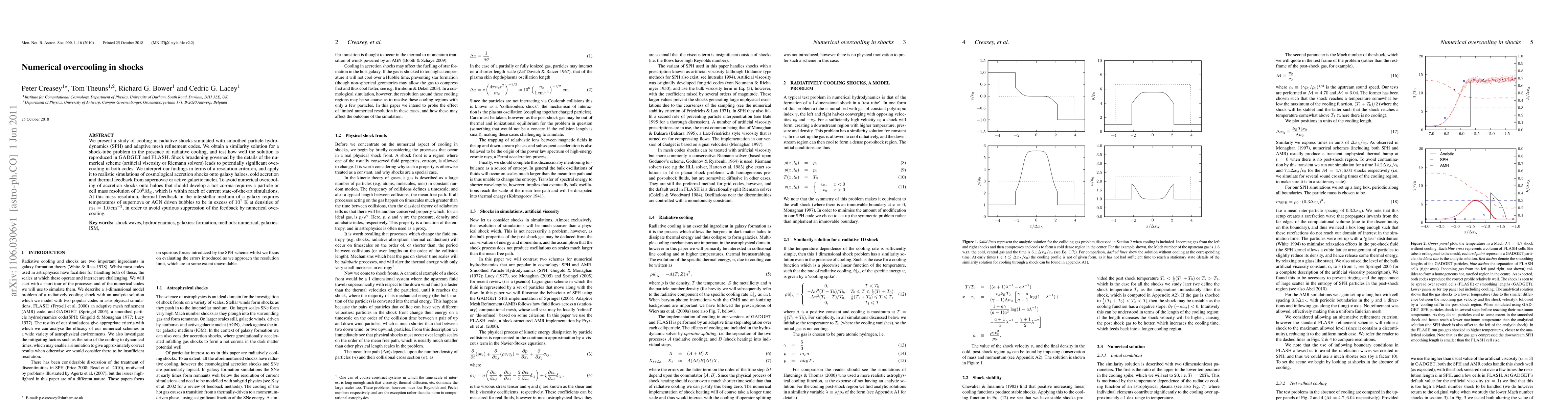 This study investigates radiative cooling in simulated shocks using SPH and adaptive mesh refinement, revealing significant numerical overcooling due to shock broadening. To mitigate this, simulations of cosmological accretion shocks require a resolution of 10^6 M_sun, ensuring effective thermal feedback at temperatures above 10^7 K.