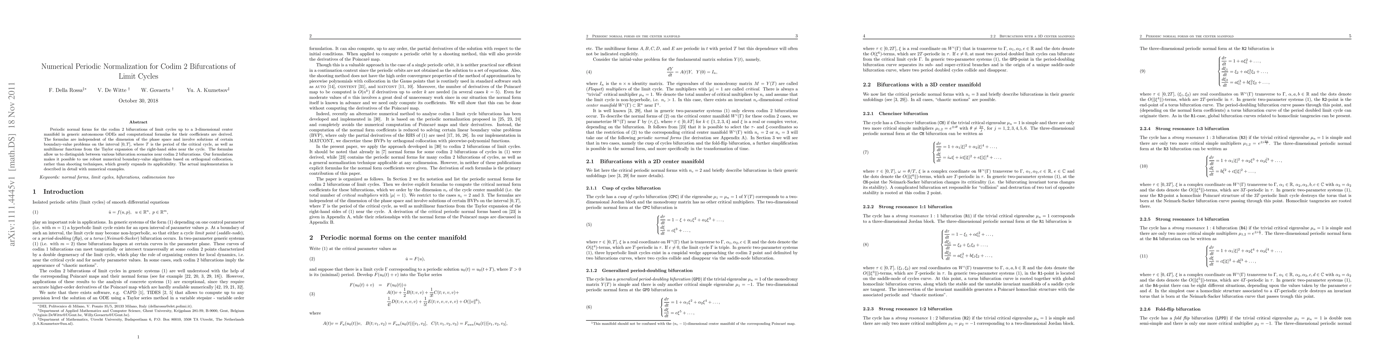 This paper derives numerical periodic normalization for codimension 2 bifurcations of limit cycles in autonomous ODEs, providing computational formulas for bifurcation scenarios. It uses orthogonal collocation methods for robust implementation, enhancing applicability over traditional shooting techniques.