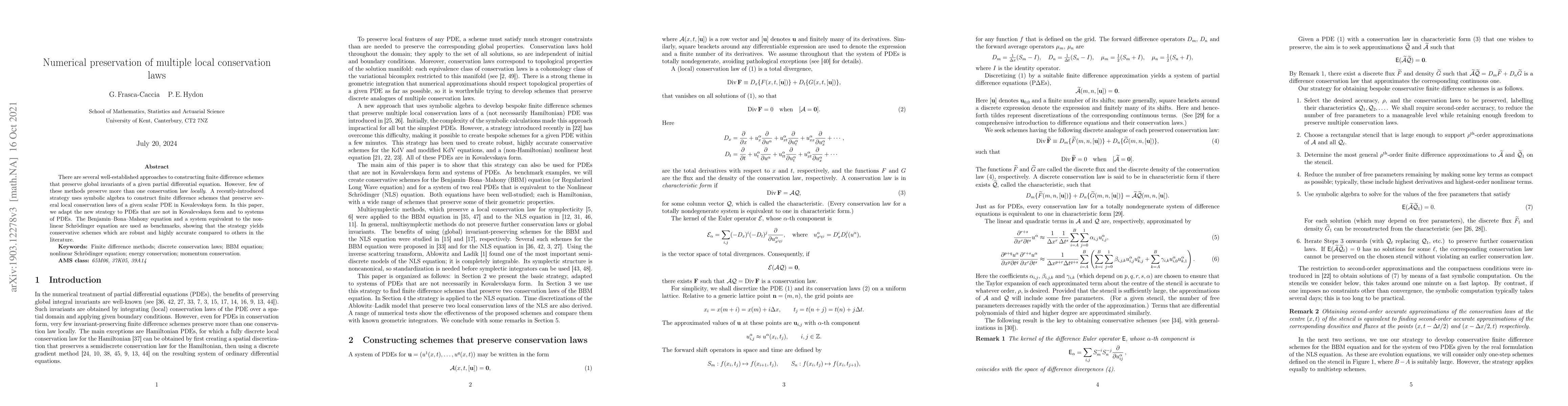 There are several well-established approaches to constructing finite difference schemes that preserve global invariants of a given partial differential equation. However, few of these methods preserve more than one conservation law locally. A recently-introduced strategy uses symbolic algebra to construct finite difference schemes that preserve several local conservation laws of a given scalar PDE in Kovalevskaya form. In this paper, we adapt the new strategy to PDEs that are not in Kovalevskaya form and to systems of PDEs. The Benjamin-Bona-Mahony equation and a system equivalent to the nonlinear Schroedinger equation are used as benchmarks, showing that the strategy yields conservative schemes which are robust and highly accurate compared to others in the literature.