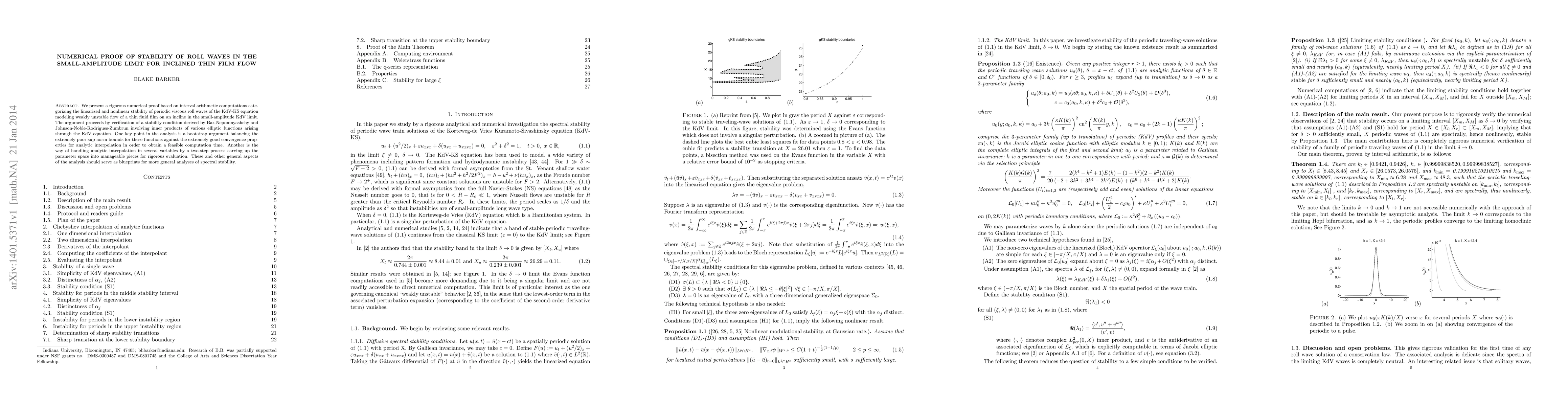 Researchers prove the stability of roll waves in thin fluid film flow on an incline, using numerical computations to verify a stability condition derived from the KdV-KS equation in the small-amplitude limit.