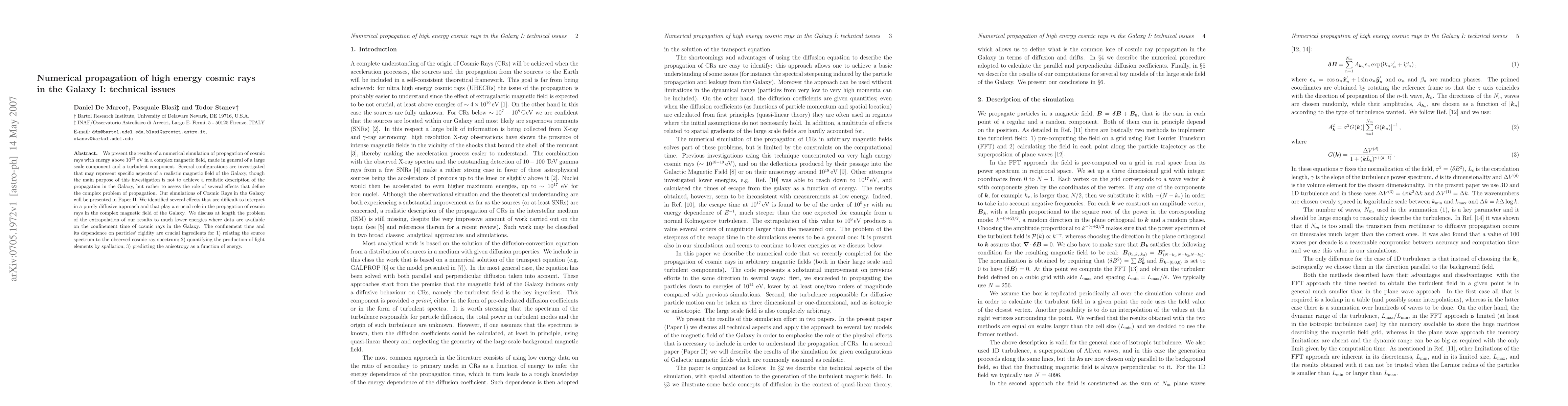 This paper presents numerical simulations of high energy cosmic rays' propagation in a complex Galactic magnetic field, focusing on assessing various propagation effects rather than achieving a realistic description. The study highlights the importance of non-diffusive effects in cosmic ray propagation and discusses the implications for lower energy cosmic rays, including their confinement time and its role in cosmic ray spectrum, spallation, and anisotropy.