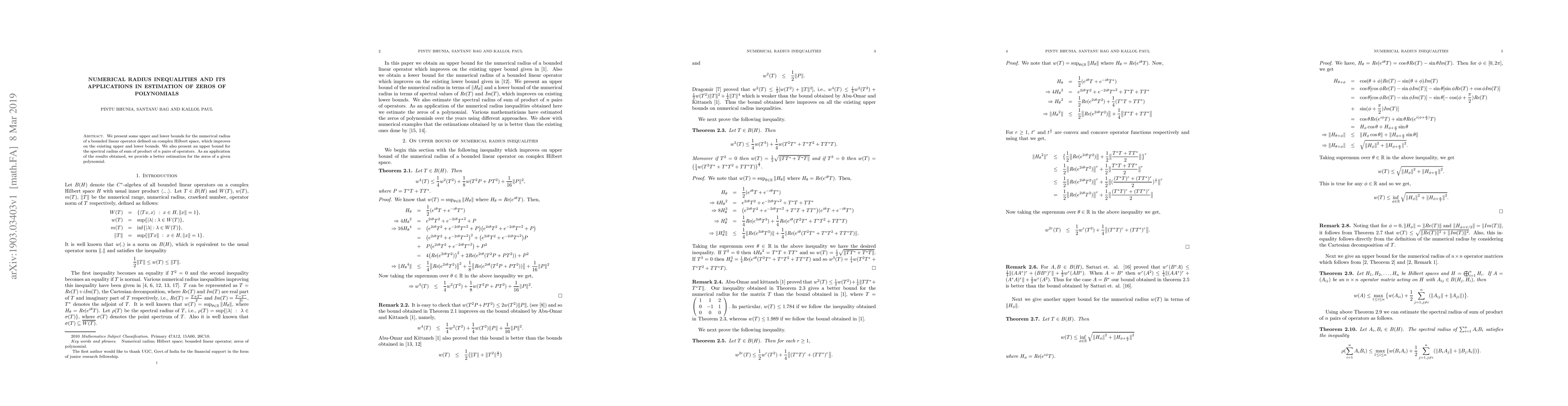 The paper introduces enhanced upper and lower bounds for the numerical radius of operators in complex Hilbert spaces, along with a new upper bound for the spectral radius of operator sums. These findings are applied to improve estimations of polynomial zeros.