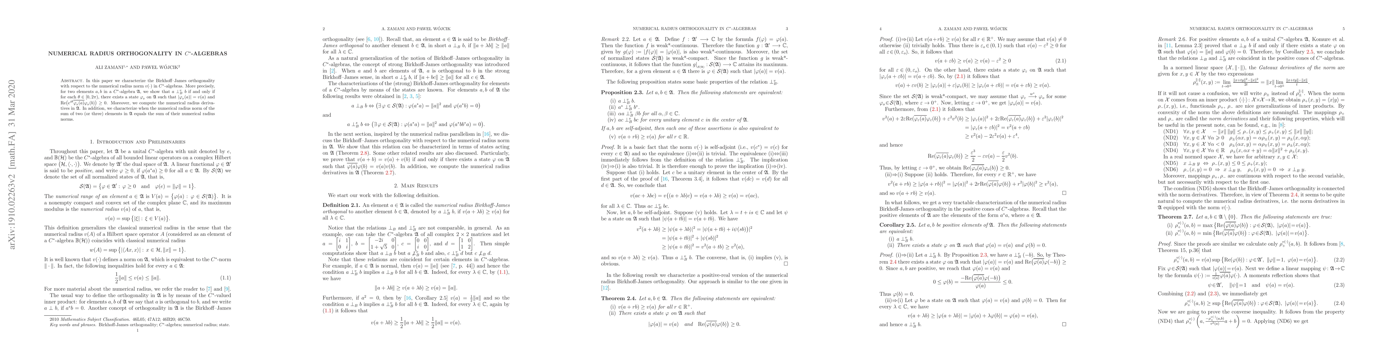 A study characterizes numerical radius orthogonality in $C^*$-algebras, finding that two elements are orthogonal if a specific condition involving states and the real part of a complex expression is met.