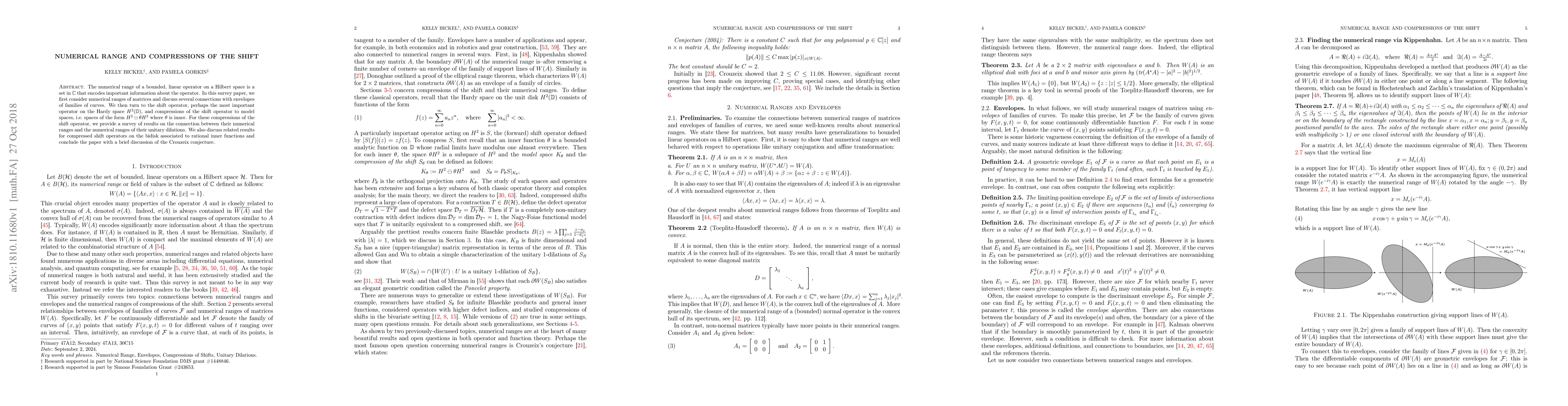 The numerical range of a bounded, linear operator on a Hilbert space is a set in $\mathbb{C}$ that encodes important information about the operator. In this survey paper, we first consider numerical ranges of matrices and discuss several connections with envelopes of families of curves. We then turn to the shift operator, perhaps the most important operator on the Hardy space $H^2(\mathbb{D})$, and compressions of the shift operator to model spaces, i.e.~spaces of the form $H^2 \ominus \theta H^2$ where $\theta$ is inner. For these compressions of the shift operator, we provide a survey of results on the connection between their numerical ranges and the numerical ranges of their unitary dilations. We also discuss related results for compressed shift operators on the bidisk associated to rational inner functions and conclude the paper with a brief discussion of the Crouzeix conjecture.