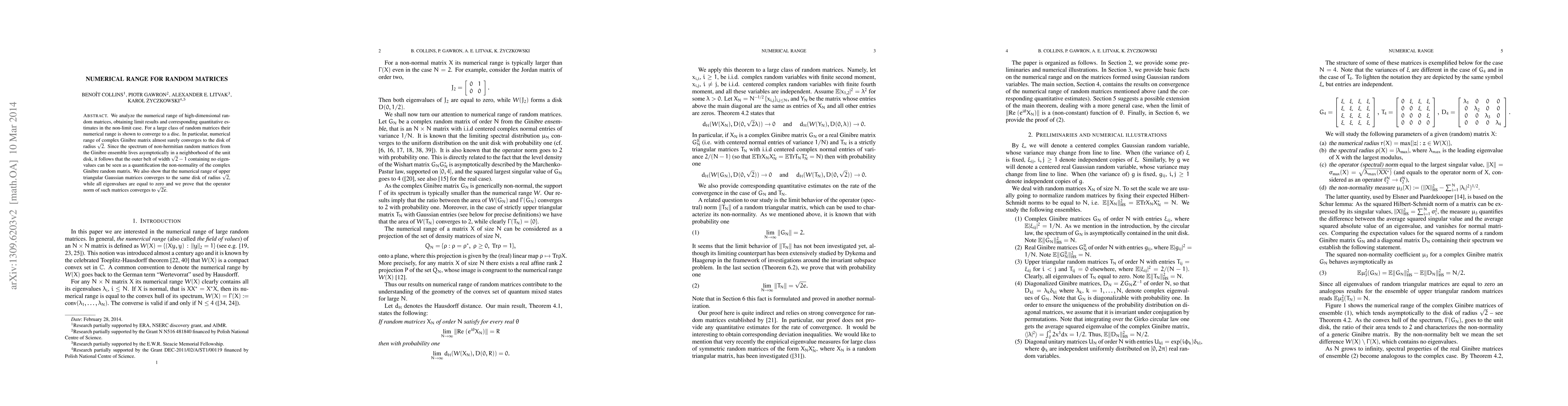 High-dimensional random matrices have a numerical range that almost surely converges to a disk of radius $oxed{ extstyle ext{2}}$, indicating the non-normality of complex Ginibre matrices.