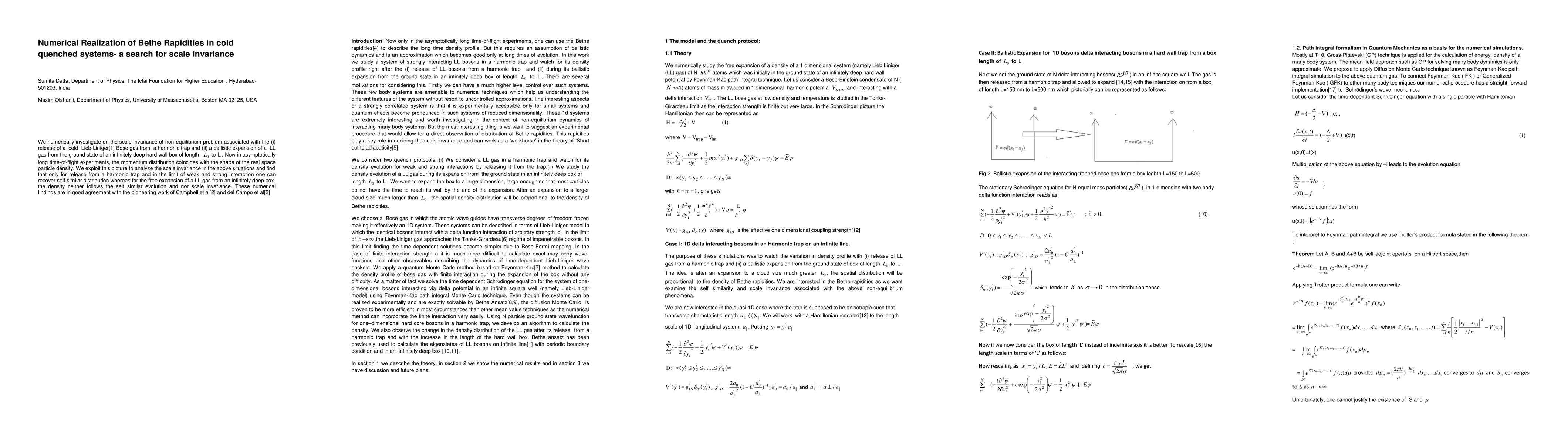 We apply Quantum Monte Carlo technique to analyze the non equlibrium state of a trapped 1d Bose gas just after the quenching of the confining potential. As a matter of fact we solve the time dependent Schroedinger equation for the system of one-dimensional bosons interacting via delta potential in an infinite square well (namely Lieb-Liniger model) using Feynman-Kac path integral Monte Carlo technique. These 1d systems are extremely interesting and worth investigating in the context of non-equilibrium dynamics of interacting many body systems. Even though the systems can be realized experimentally and are exactly solvable by Bethe Ansatz, the diffusion Monte Carlo is proven to be more efficient in most circumstances than other mean value techniques as the numerical method can incorporate the finite interaction very easily. Using N particle ground state wavefunction for one-dimensional hard core bosons in a harmonic trap, we develop an algorithm to calculate density. We also observe the change in the density distribution by changing the length of the hard wall box. After an increase in the box length, we still get a self-similar density distribution.