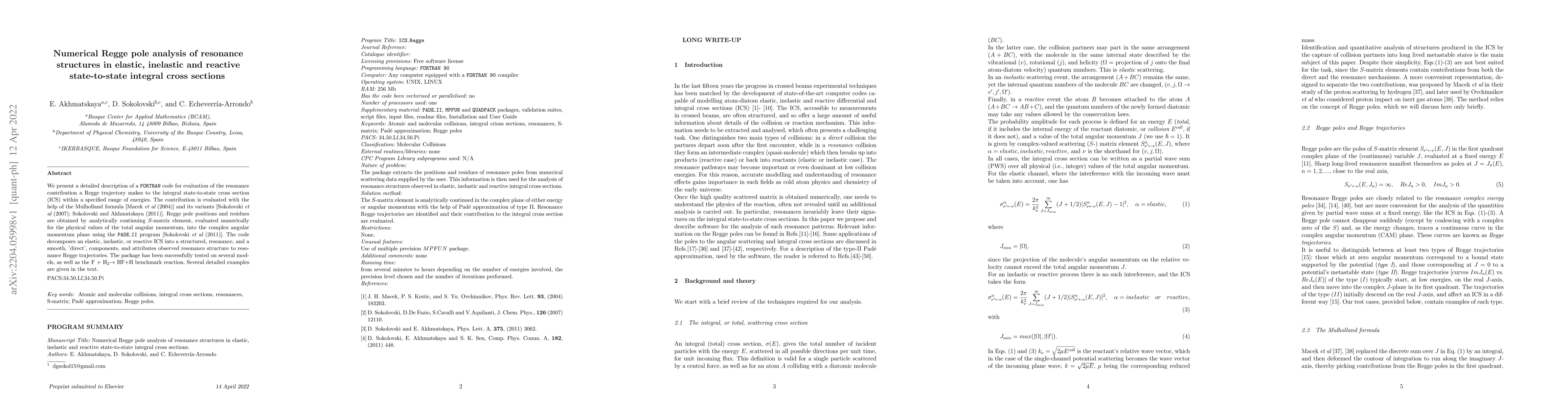 E. Akhmatskaya, D. Sokolovski, D. De Fazio et al.