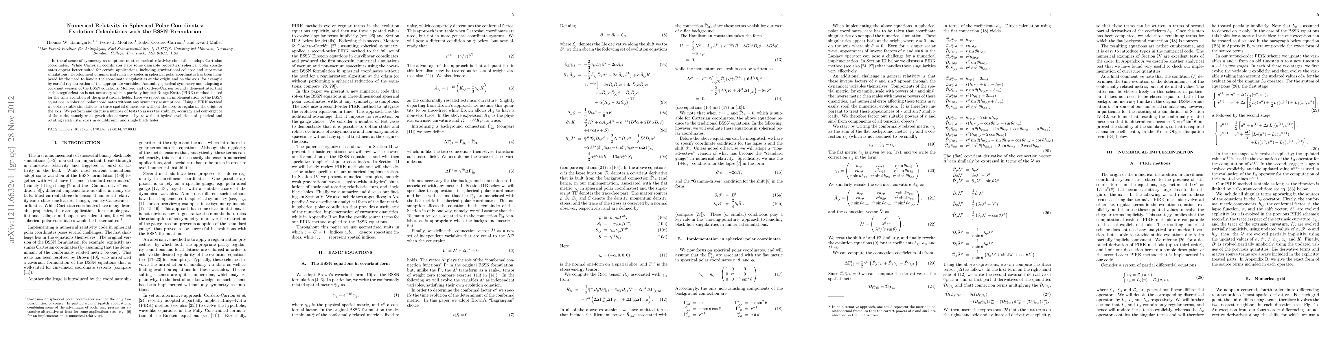 This paper presents a numerical relativity code implementing the BSSN formulation in spherical polar coordinates, achieving stable simulations without coordinate singularities at the origin or axis using a partially implicit Runge-Kutta method. Tests confirm the stability, accuracy, and convergence of the code for scenarios including gravitational waves and relativistic stars.