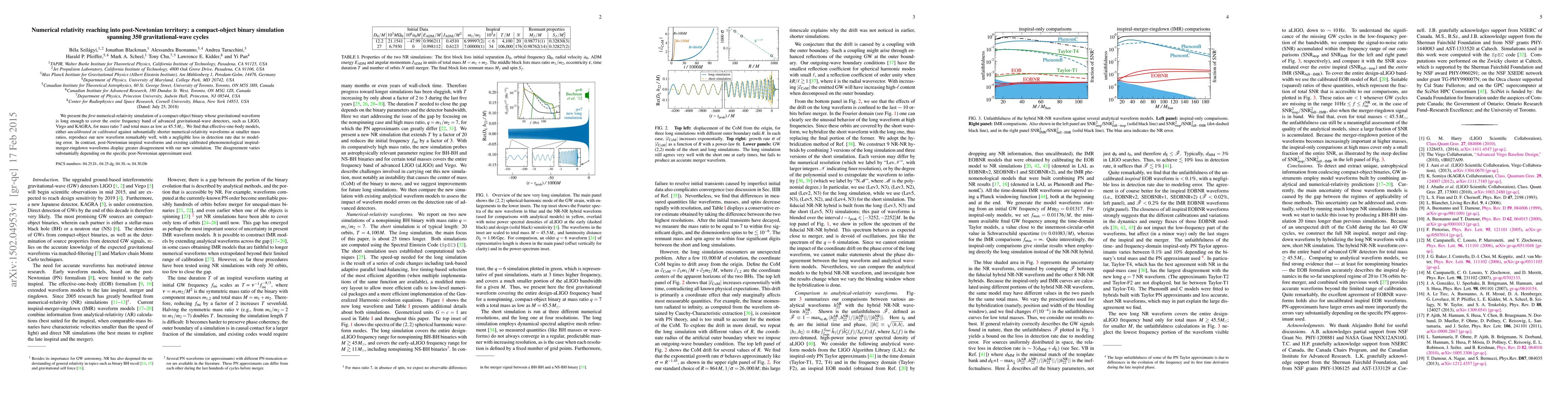 This paper reports a groundbreaking numerical-relativity simulation of a compact-object binary spanning 350 gravitational-wave cycles, covering the detection band of advanced detectors like LIGO. Effective-one-body models show minimal loss in detection rate compared to post-Newtonian and phenomenological models, which exhibit greater discrepancies.