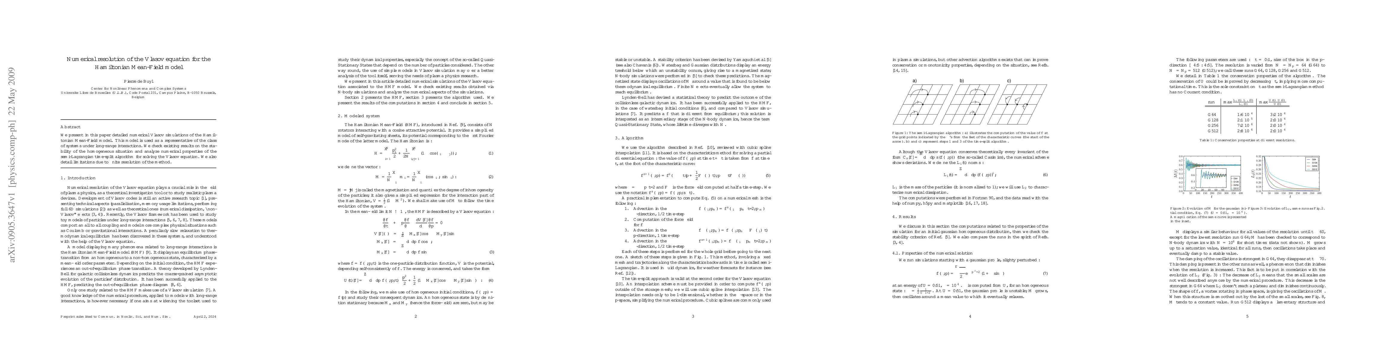 Researchers presented numerical simulations of the Vlasov equation for a Hamiltonian Mean-Field model, analyzing stability and limitations of a semi-Lagrangian algorithm used to solve the equation.