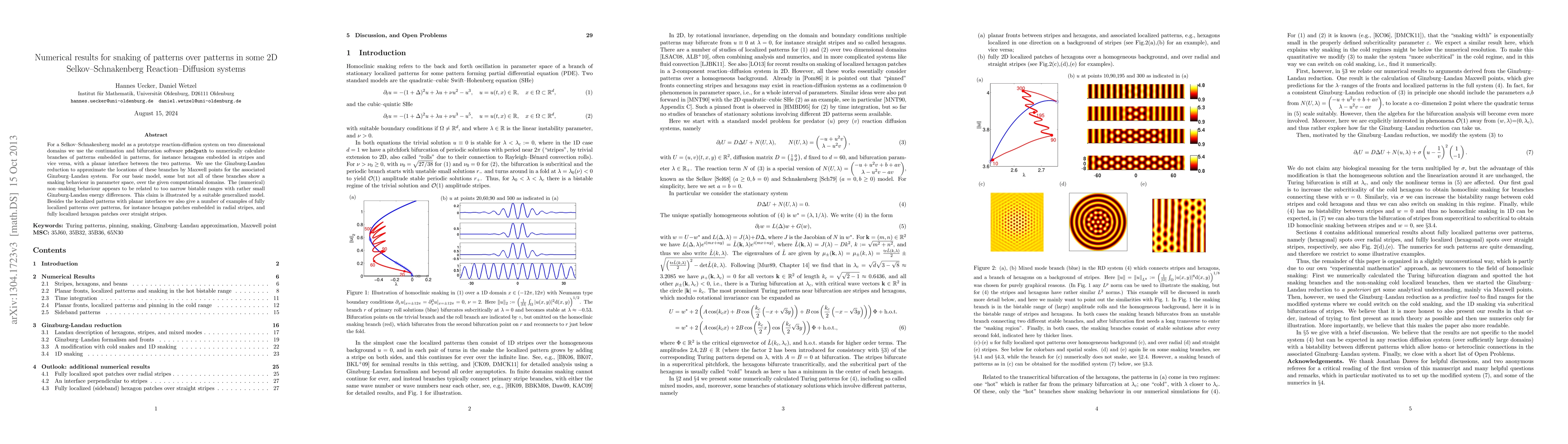 Researchers numerically studied the emergence of patterns within patterns in 2D reaction-diffusion systems, finding that some patterns exhibit snaking behavior in parameter space, while others do not.