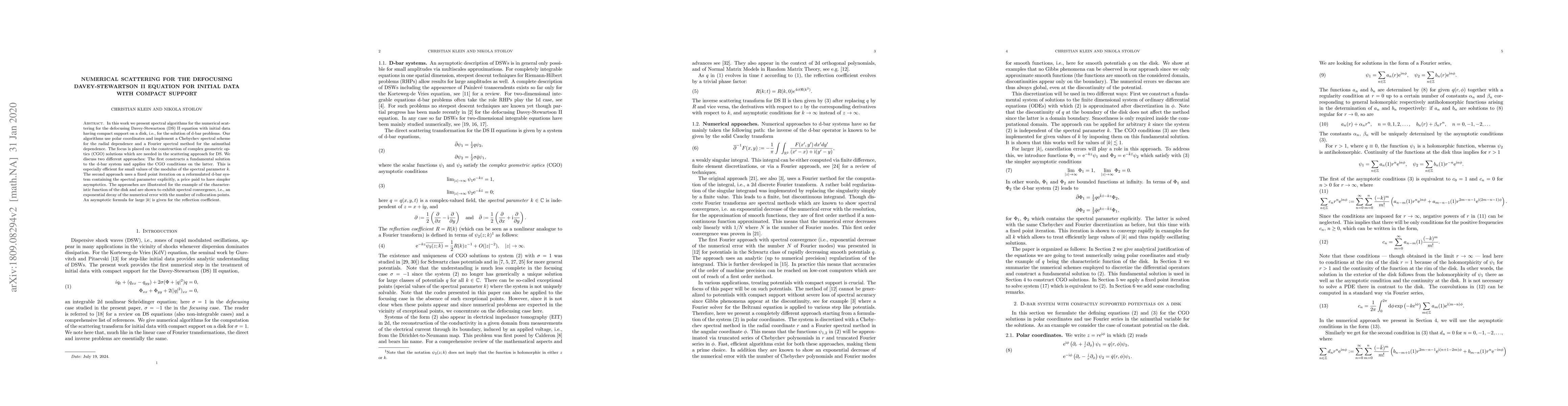 This paper develops spectral algorithms for numerically solving the defocusing Davey-Stewartson II equation with compactly supported initial data, employing a Chebychev spectral scheme and Fourier spectral method. Two approaches are presented for constructing complex geometric optics solutions, demonstrating spectral convergence and providing an asymptotic formula for the reflection coefficient.