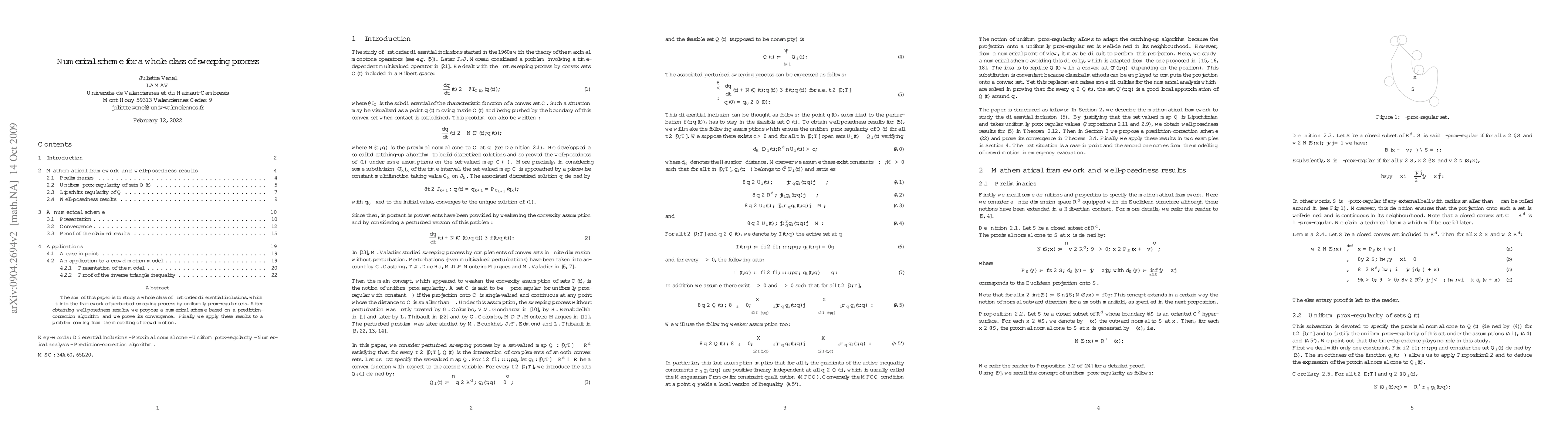 The aim of this paper is to study a whole class of first order differential inclusions, which fit into the framework of perturbed sweeping process by uniformly prox-regular sets. After obtaining well-posedness results, we propose a numerical scheme based on a prediction-correction algorithm and we prove its convergence. Finally we apply these results to a problem coming from modelling of crowd motion.
