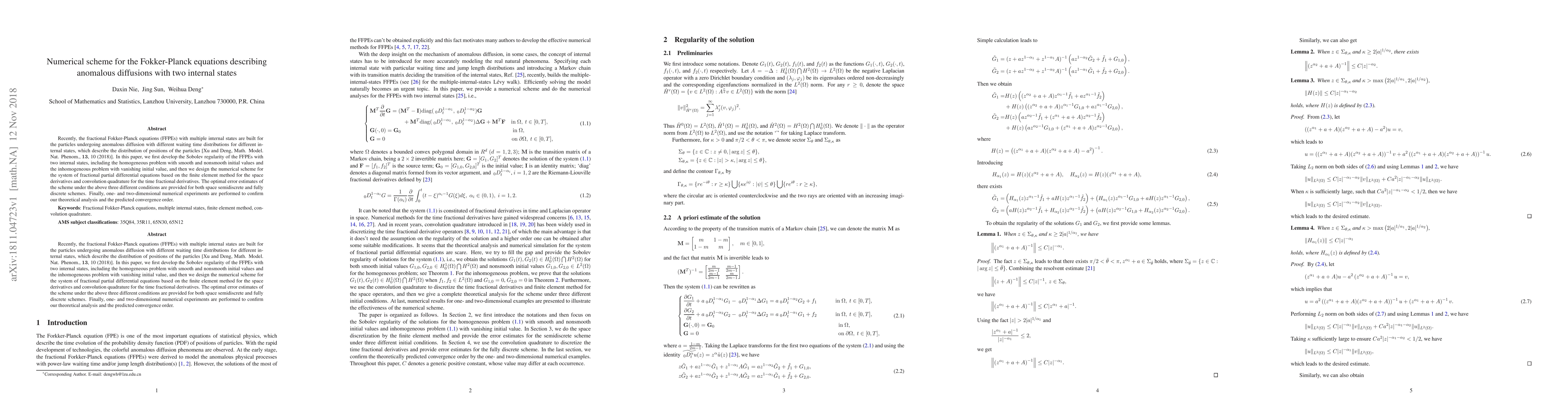 This paper develops a numerical scheme for fractional Fokker-Planck equations describing anomalous diffusion with two internal states. It provides Sobolev regularity analysis and optimal error estimates for both semidiscrete and fully discrete schemes, validated by one- and two-dimensional numerical experiments.