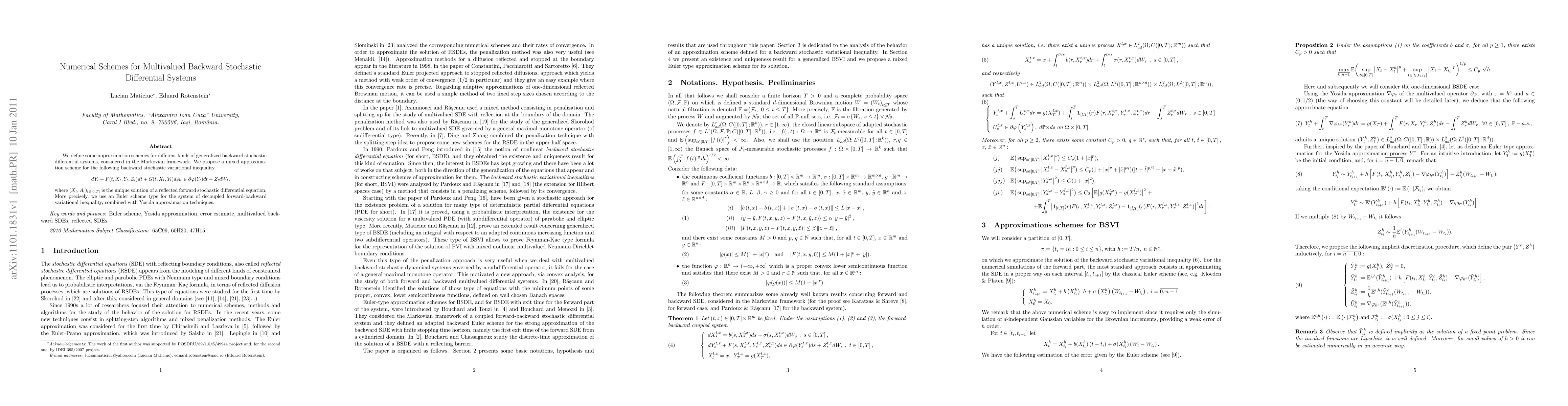 This paper introduces approximation schemes for generalized backward stochastic differential systems within a Markovian framework, proposing a mixed Euler scheme combined with Yosida approximation techniques for a decoupled system involving forward reflected SDE and backward stochastic variational inequality.