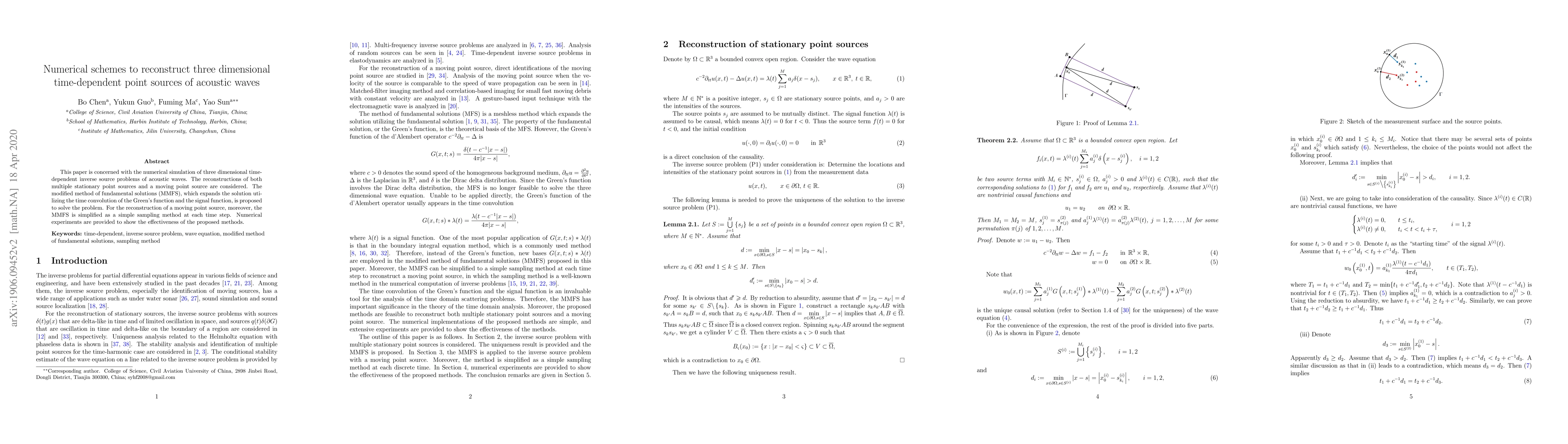This paper proposes the modified method of fundamental solutions (MMFS) to reconstruct three-dimensional time-dependent point sources of acoustic waves, including both stationary and moving sources. Numerical experiments demonstrate the effectiveness of the proposed method.