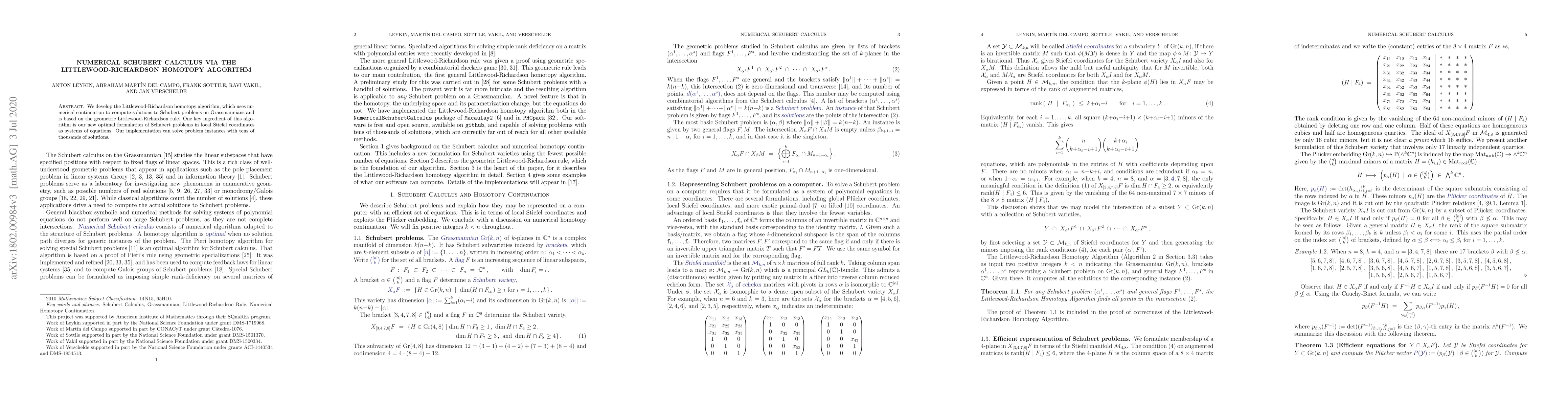 We develop the Littlewood-Richardson homotopy algorithm, which uses numerical continuation to compute solutions to Schubert problems on Grassmannians and is based on the geometric Littlewood-Richardson rule. One key ingredient of this algorithm is our new optimal formulation of Schubert problems in local Stiefel coordinates as systems of equations. Our implementation can solve problem instances with tens of thousands of solutions.