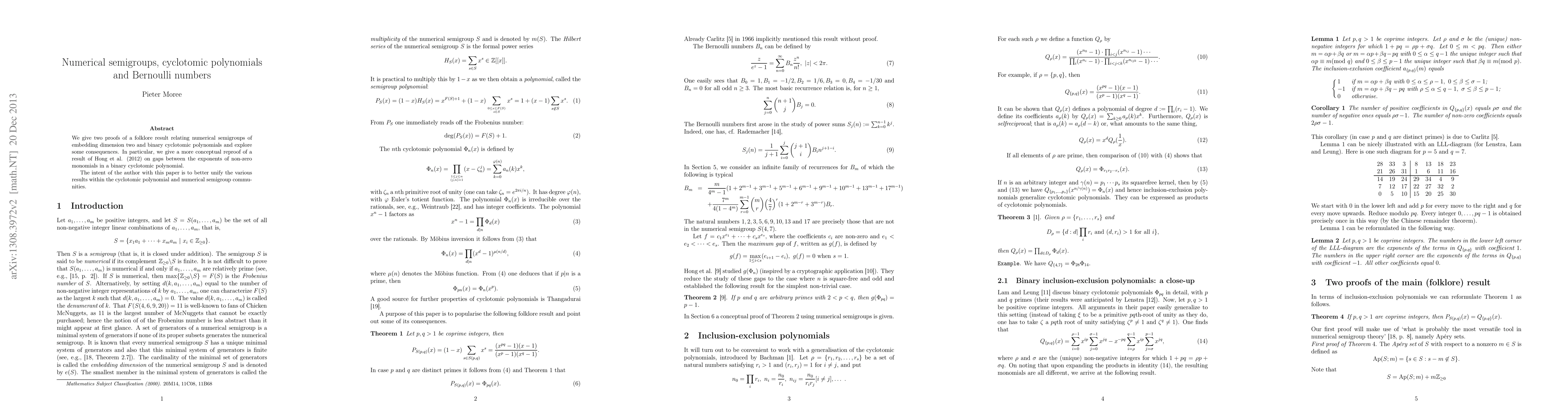 This paper provides two proofs of a well-known result connecting numerical semigroups of embedding dimension two with binary cyclotomic polynomials and discusses its implications, including a conceptual reproof of a 2012 result on gaps in exponents of non-zero monomials in binary cyclotomic polynomials. The author aims to unify findings within the cyclotomic polynomial and numerical semigroup research communities.