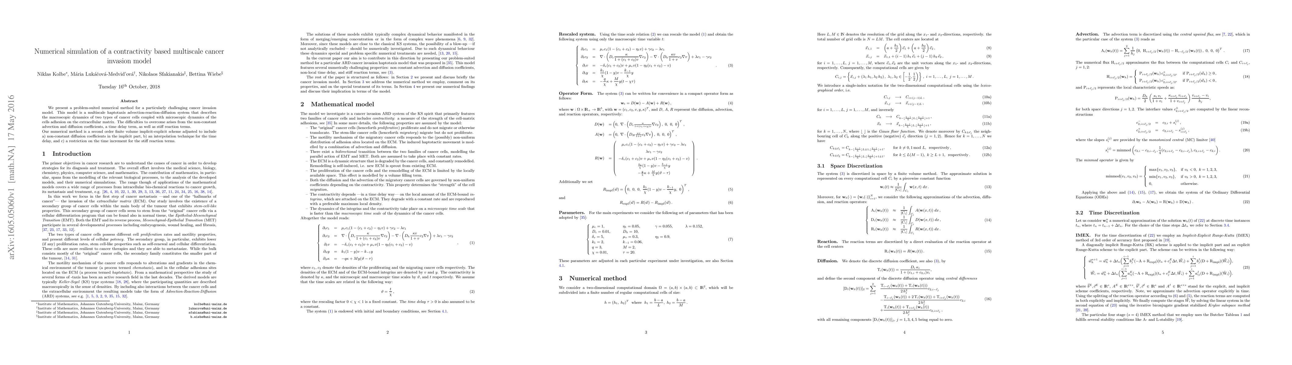 This paper introduces a second-order finite volume implicit-explicit scheme for a multiscale cancer invasion model involving haptotaxis and non-constant advection/diffusion. The method addresses challenges like time delays and stiff reactions through interpolation and time increment restrictions.