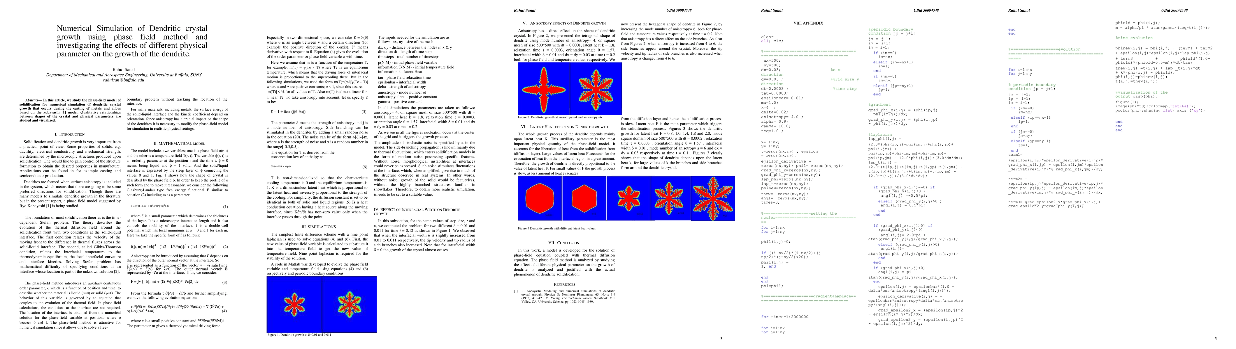 Summary: This paper uses the phase-field method to simulate dendritic crystal growth during metal casting, examining how various physical parameters influence dendrite shapes and visualizing these relationships.