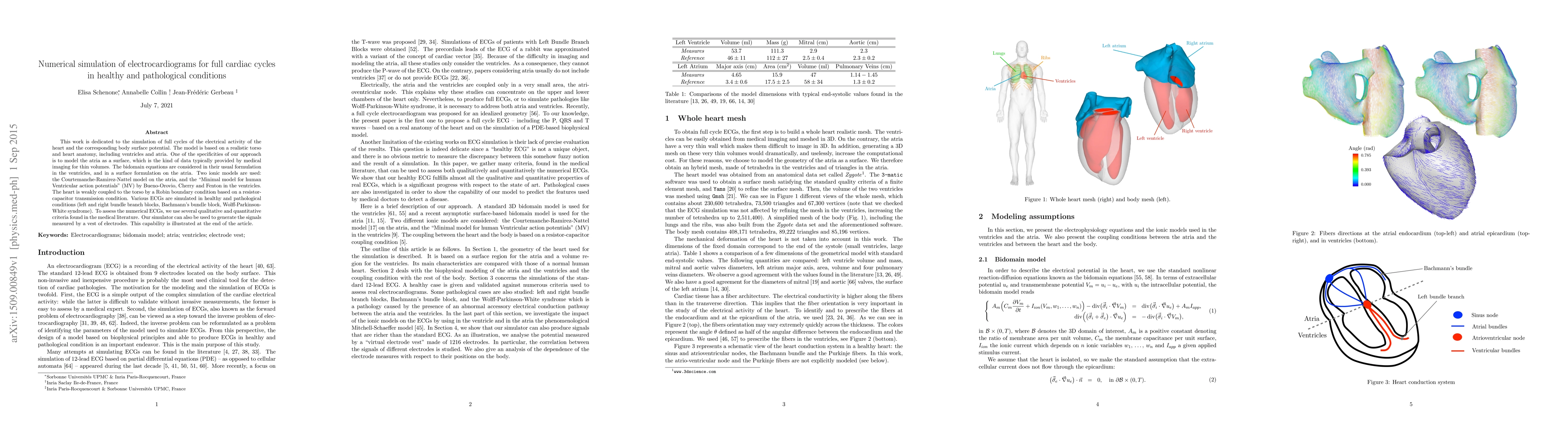 Researchers developed a numerical simulation model to generate realistic electrocardiograms for full cardiac cycles in both healthy and pathological conditions, using advanced ionic models and a realistic torso and heart anatomy.