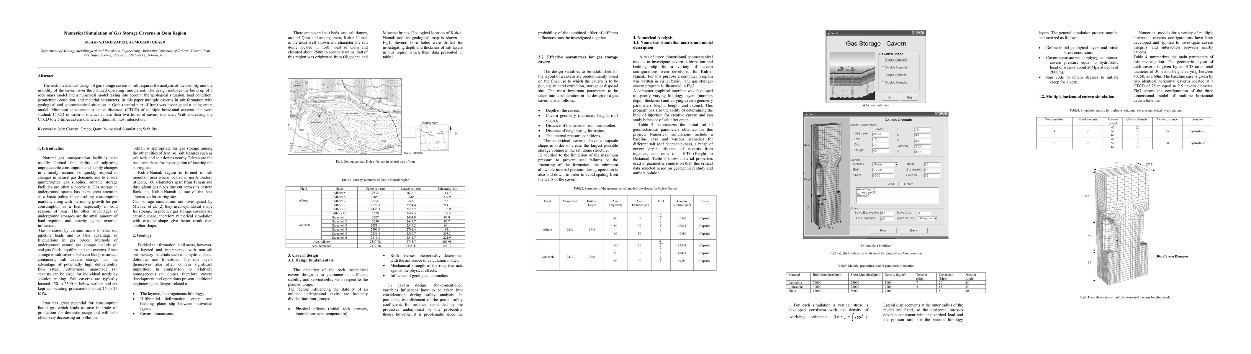 This paper investigates the stability and usability of gas storage caverns in salt formations in Qom, Iran, using a numerical simulation approach. The study finds that cavern interactions significantly reduce when the center-to-center distance is increased to 2.5 times the cavern diameter.