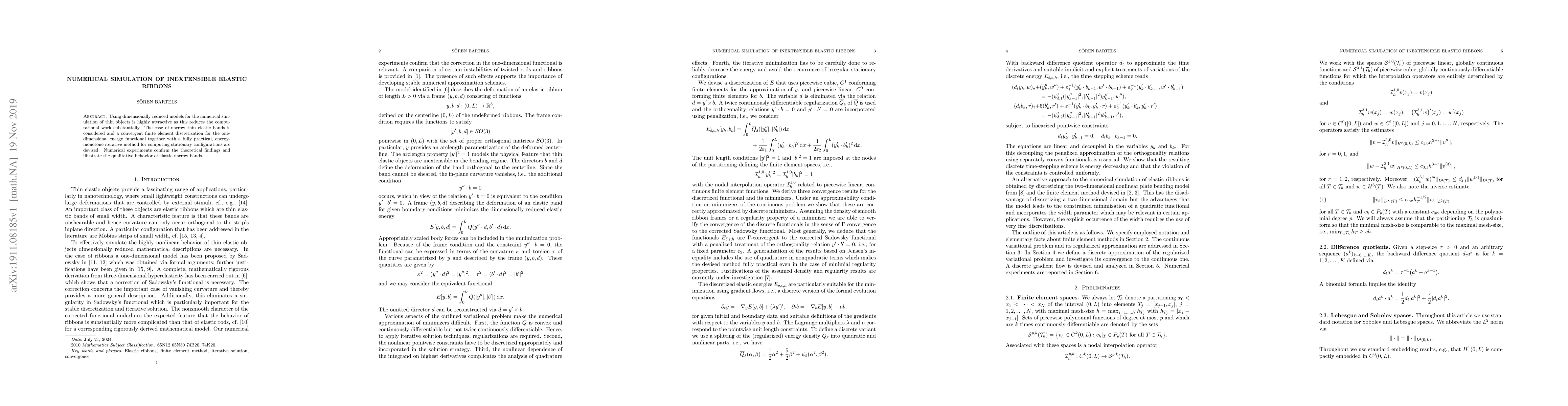 Researchers developed a method to simulate elastic ribbons using dimensionally reduced models, confirming theoretical findings through numerical experiments.