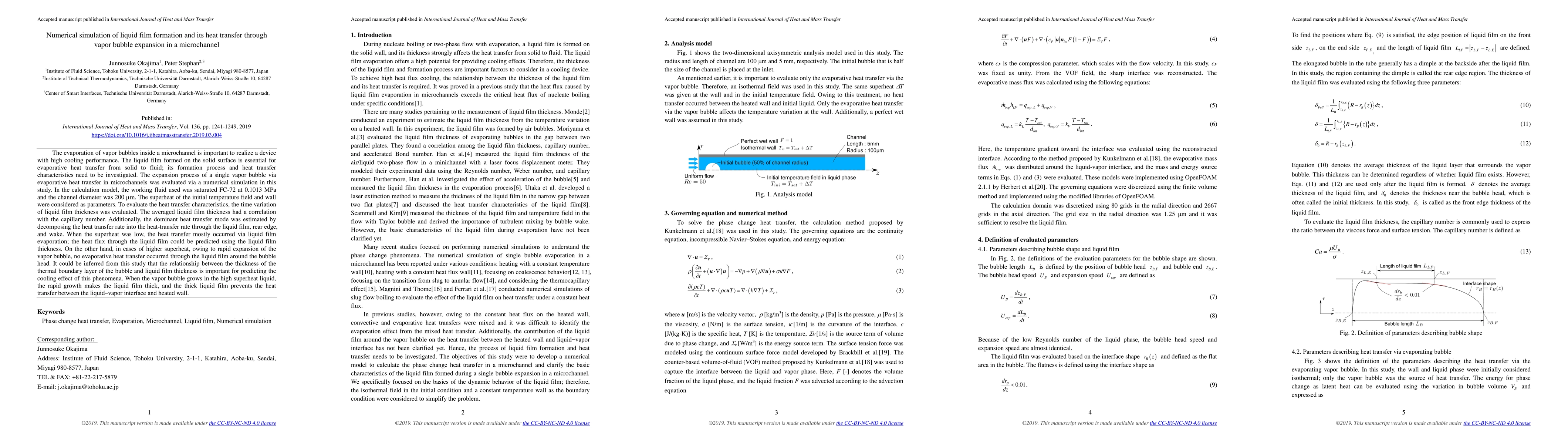 This study numerically simulates vapor bubble expansion in microchannels to investigate liquid film formation and heat transfer. The results show that low superheat favors heat transfer via liquid film evaporation, while high superheat leads to rapid vapor bubble growth, thickening the liquid film and reducing heat transfer efficiency.