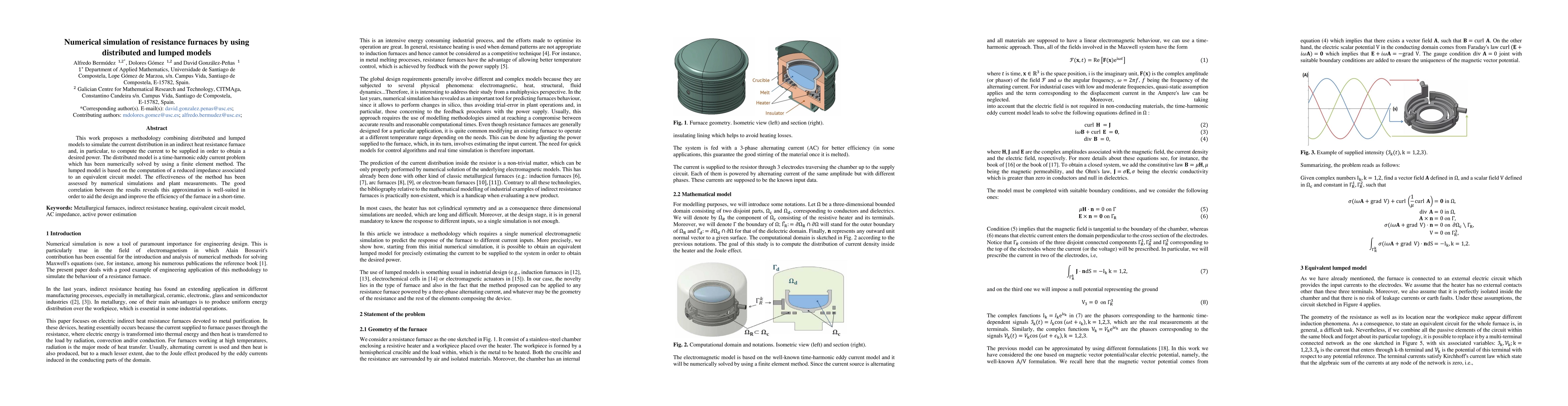 This paper combines distributed and lumped models to simulate current distribution in resistance furnaces, using finite element methods for the distributed model and an equivalent circuit for the lumped model. The proposed methodology shows good correlation with measurements, aiding in furnace design and efficiency improvement.