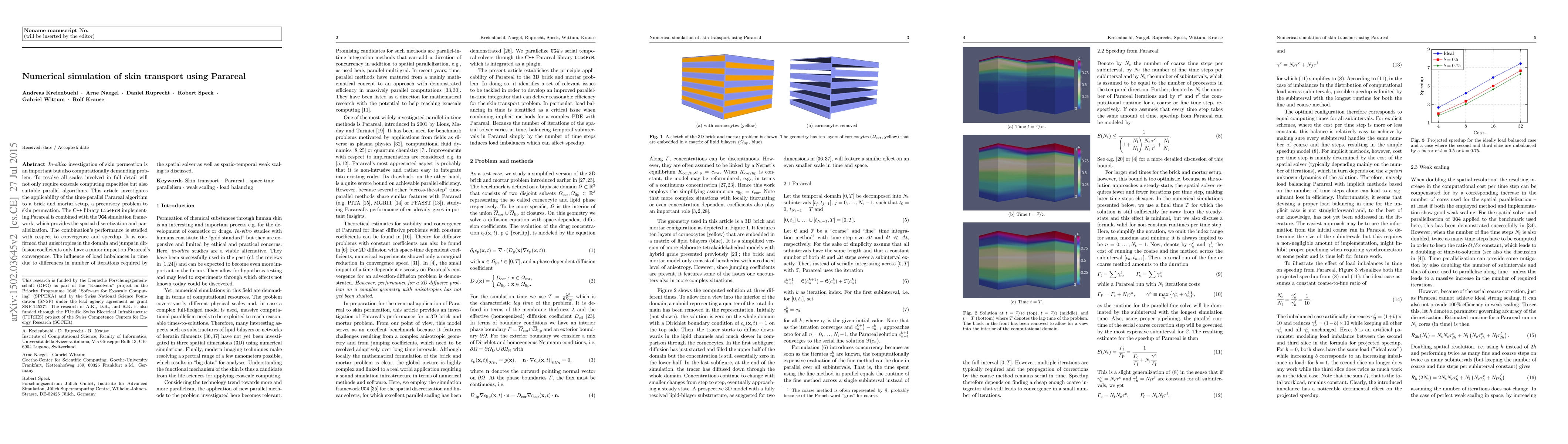 Researchers used a time-parallel Parareal algorithm to simulate skin transport in a brick and mortar setup, finding it converges well despite minor impacts from domain anisotropies and diffusion coefficient jumps.