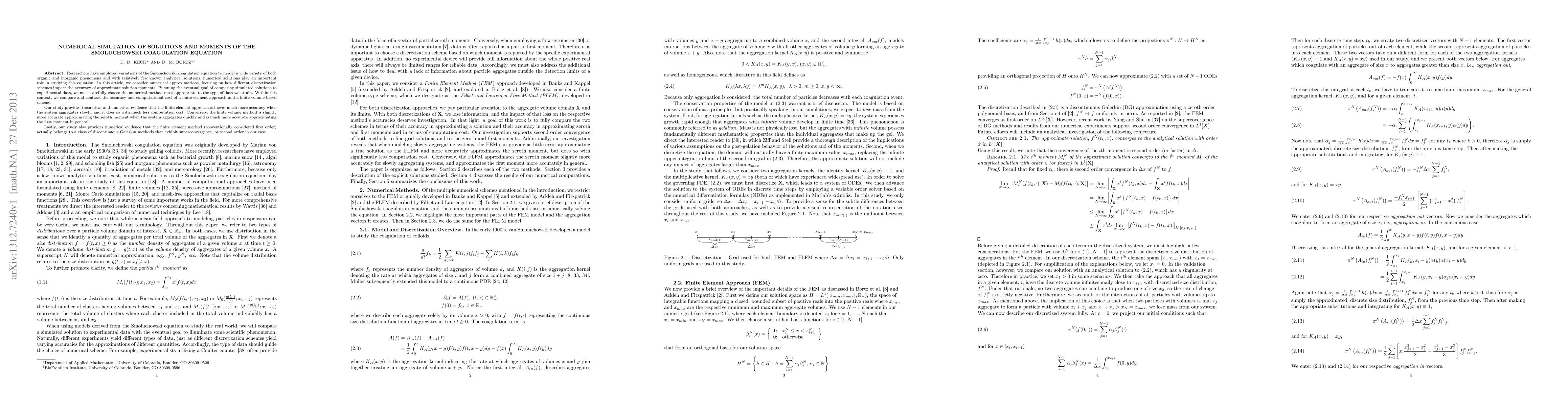 Researchers have employed variations of the Smoluchowski coagulation equation to model a wide variety of both organic and inorganic phenomena and with relatively few known analytical solutions, numerical solutions play an important role in studying this equation. In this article, we consider numerical approximations, focusing on how different discretization schemes impact the accuracy of approximate solution moments. Pursuing the eventual goal of comparing simulated solutions to experimental data, we must carefully choose the numerical method most appropriate to the type of data we attain. Within this context, we compare and contrast the accuracy and computational cost of a finite element approach and a finite volume-based scheme. Our study provides theoretical and numerical evidence that the finite element approach achieves much more accuracy when the system aggregates slowly, and it does so with much less computation cost. Conversely, the finite volume method is slightly more accurate approximating the zeroth moment when the system aggregates quickly and is much more accurate approximating the first moment in general. Lastly, our study also provides numerical evidence that the finite element method (conventionally considered first order) actually belongs to a class of discontinuous Galerkin methods that exhibit superconvergence, or second order in our case.