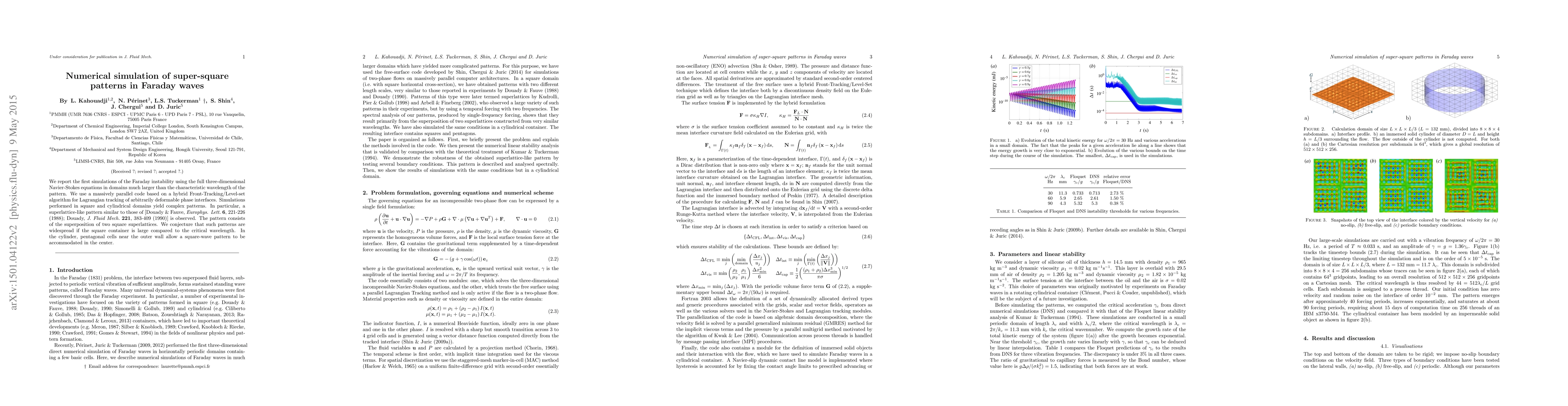 Researchers used numerical simulations to study Faraday waves in large domains, discovering a superlattice-like pattern that consists of two square superlattices. They suggest these patterns may be widespread when the container is larger than the critical wavelength.