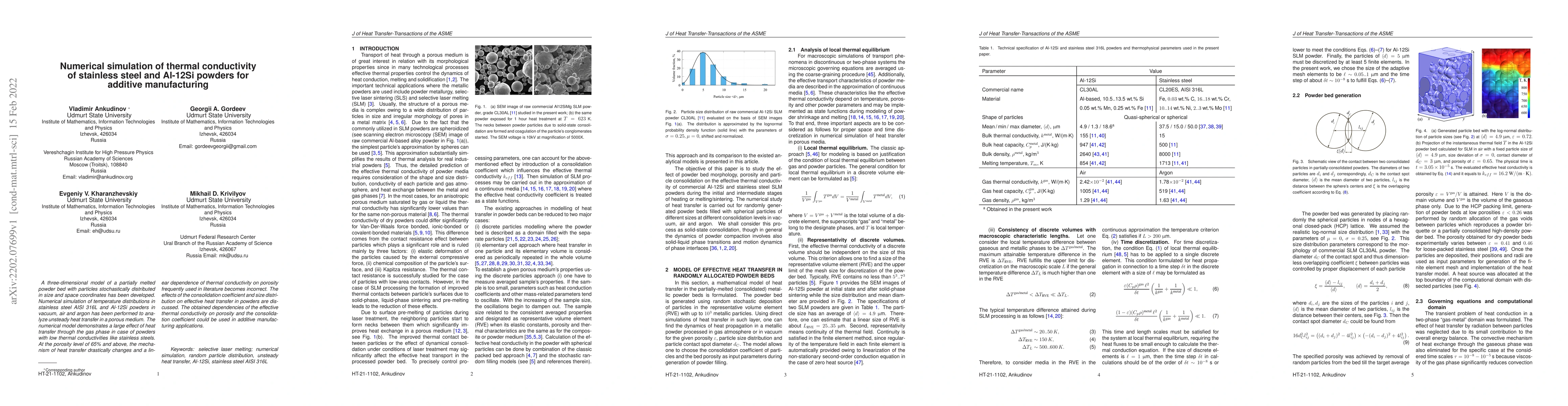 This paper develops a three-dimensional numerical model to simulate unsteady heat transfer in partially melted stainless steel and Al-12Si powder beds, showing significant gas phase heat transfer effects in low thermal conductivity materials. It reveals that traditional linear thermal conductivity models fail at high porosity levels, providing new insights for additive manufacturing.
