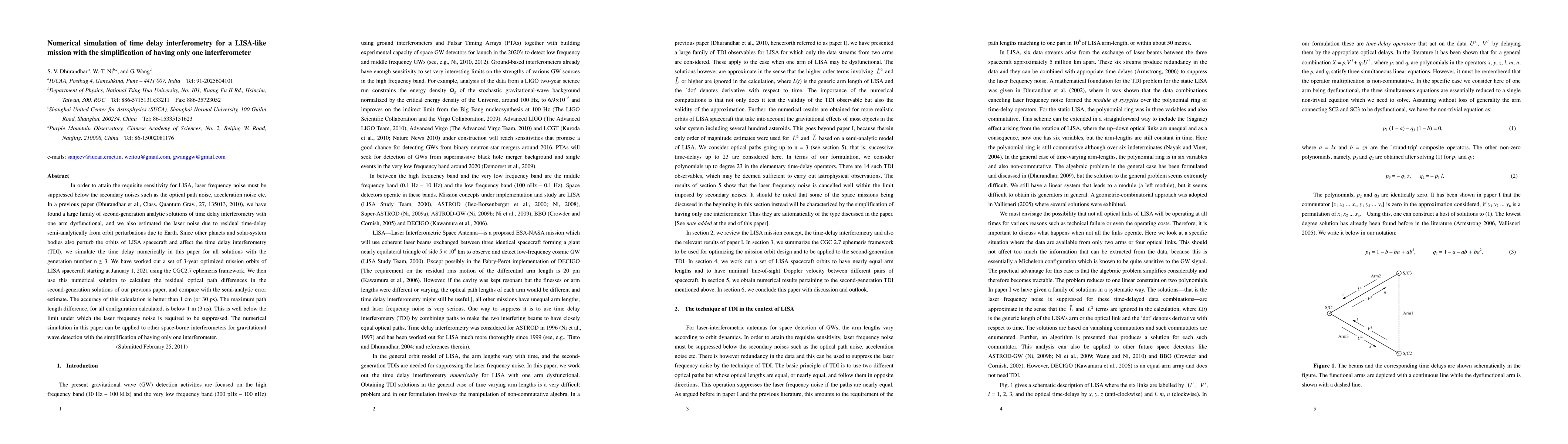This paper numerically simulates time delay interferometry for a LISA-like mission with a single interferometer, focusing on suppressing laser frequency noise below secondary perturbations. The study optimizes mission orbits and calculates residual optical path differences, achieving an accuracy better than 1 cm, ensuring the laser noise remains below the required suppression limit.